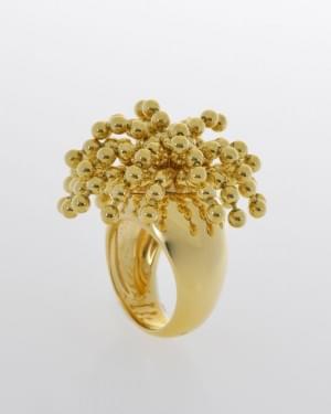 130. Cartier, bague "Perruque" ornée de fils de billes d'or mobiles