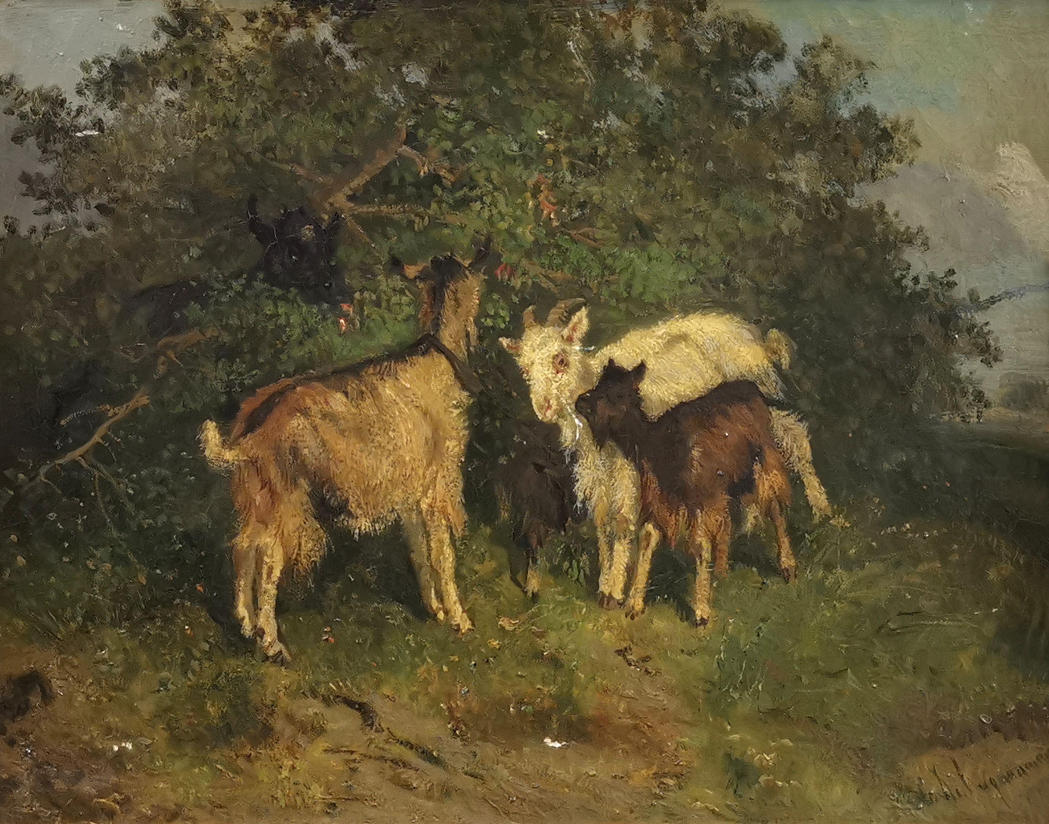 Les trois chèvres, huile sur toile, 32,5x41 cm