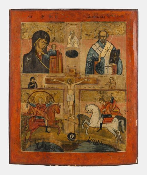 3999. Crucifixion entourée de la Mère de Dieu, Saint Nicolas, Saint Ge...