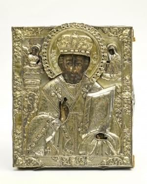 Icône sur panneau à oklade en vermeil à émaux cloisonnés, Moscou...