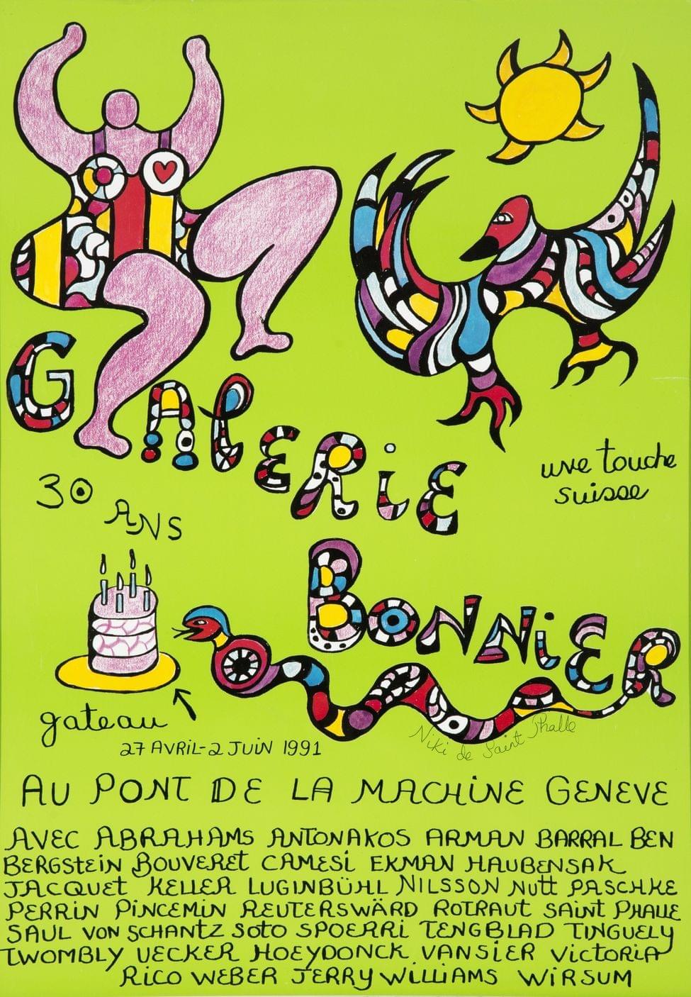 Affiche des 30 ans de la Galerie Bonnier, sérigraphie, signée, 63x44 cm