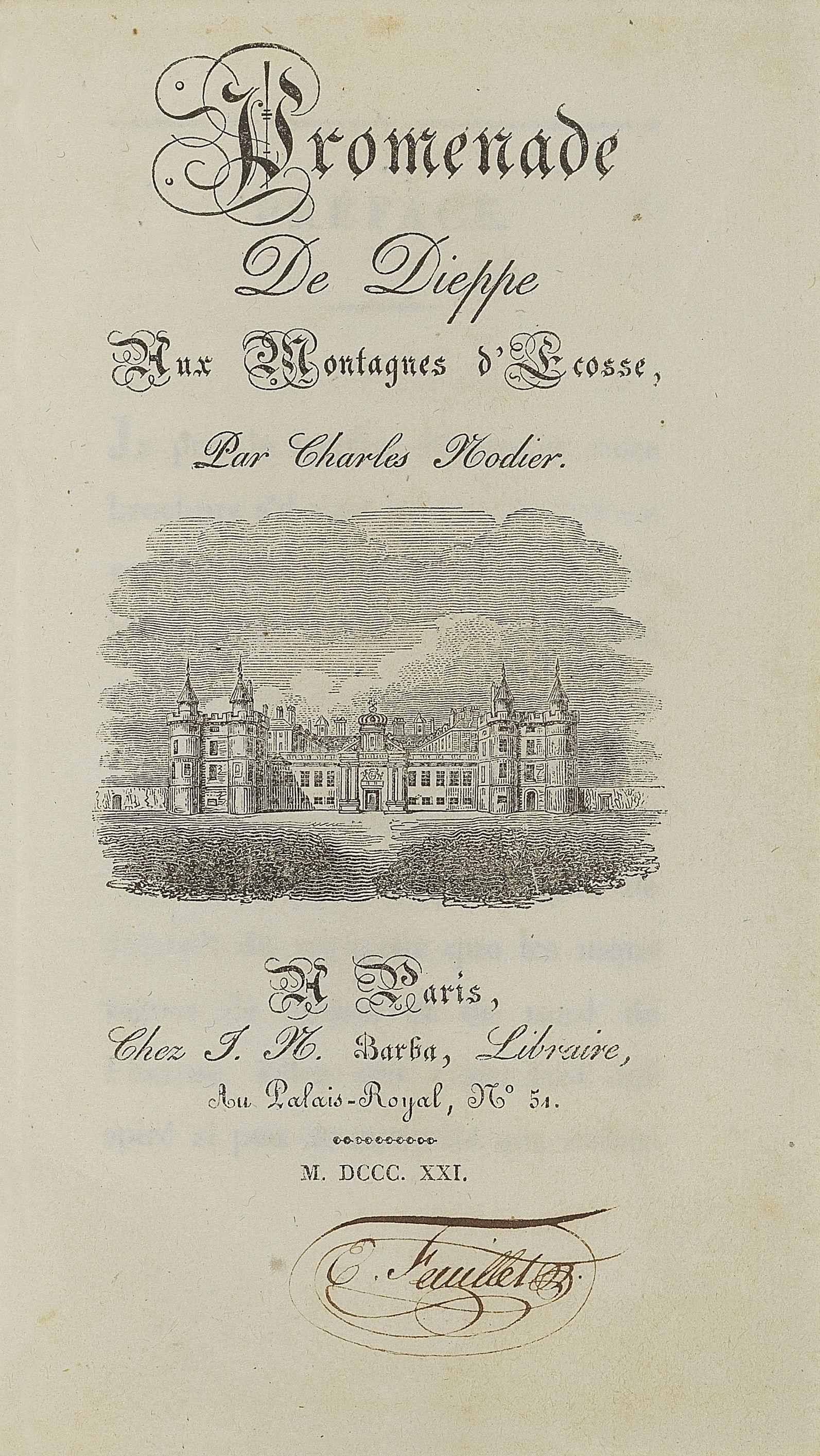 4435. NODIER (Charles : Promenade de Dieppe aux montagnes d’Ecosse. Paris, Barba, 1821