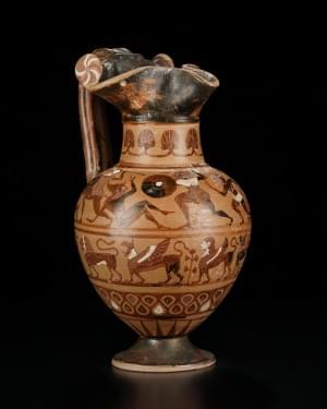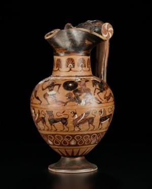 A black-figure terracotta pontic group oinochoe, end of 6th Century B.C. Provenance: Swiss private collection
