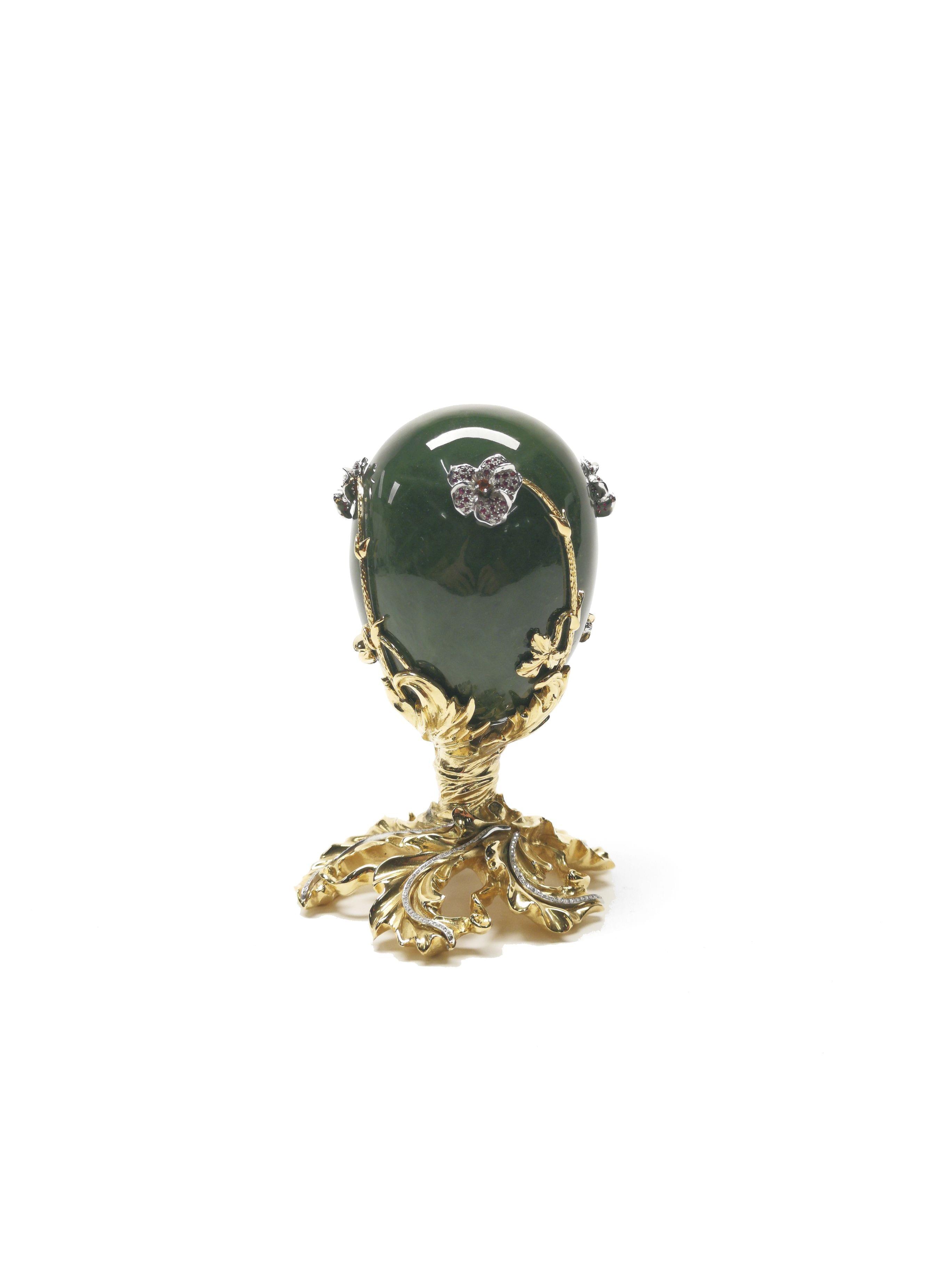 Jade, yeux sertis de rubis taille cabochon, H 4,5 cm