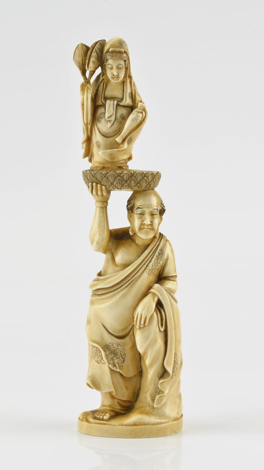 Ivoire sculpté, signé, Japon début XXe s, H 19 cm