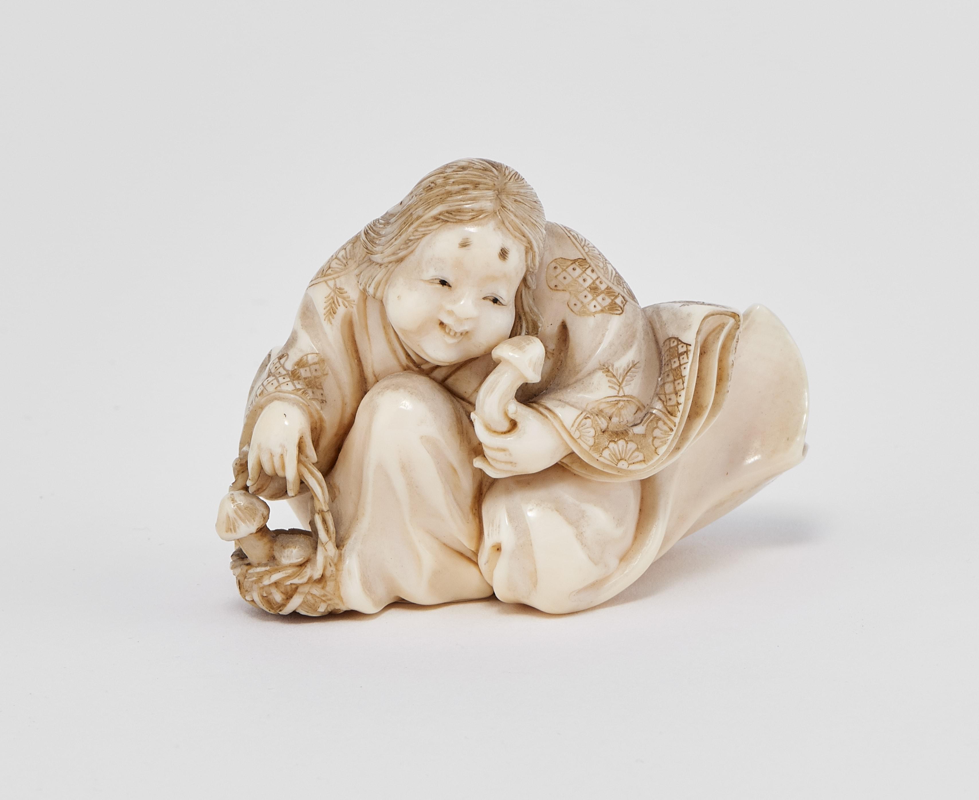 57. Okimono figurant un femme cueillant des champignons, Japon, XIXe s