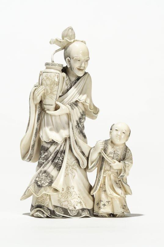 Porcelaine à décor bleu blanc de personnages, H 62 cm
