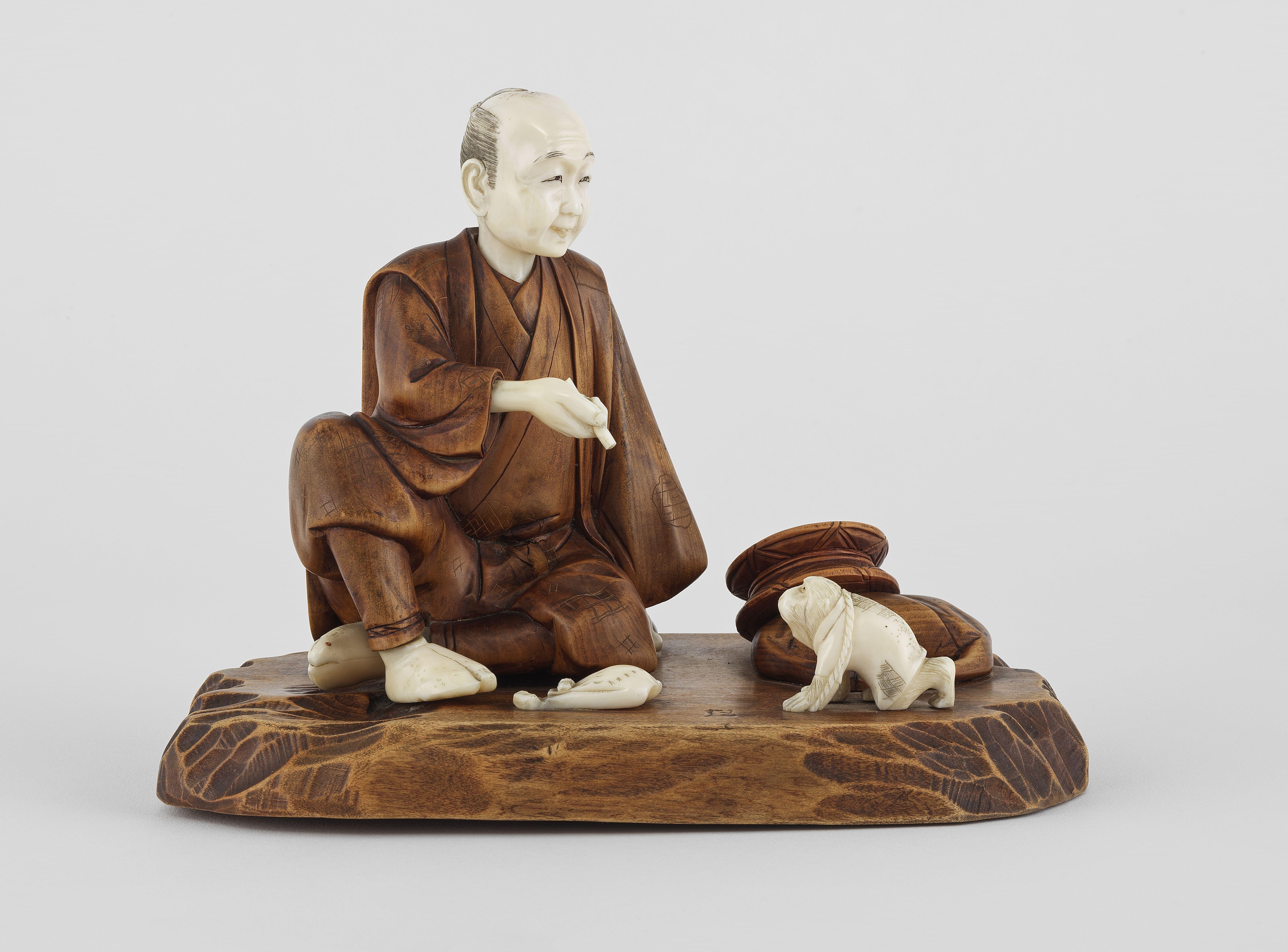 133. Okimono figurant un personnage au singe, Japon, fin XIXe s