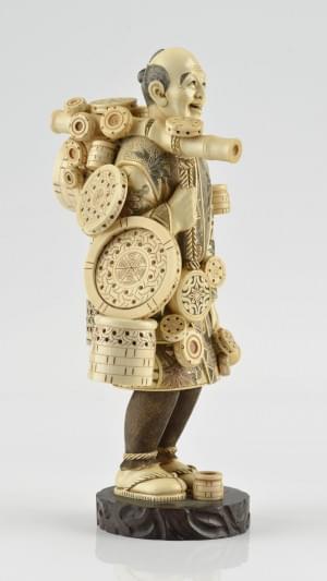 728. Okimono figurant un vendeur ambulant de vanneries
