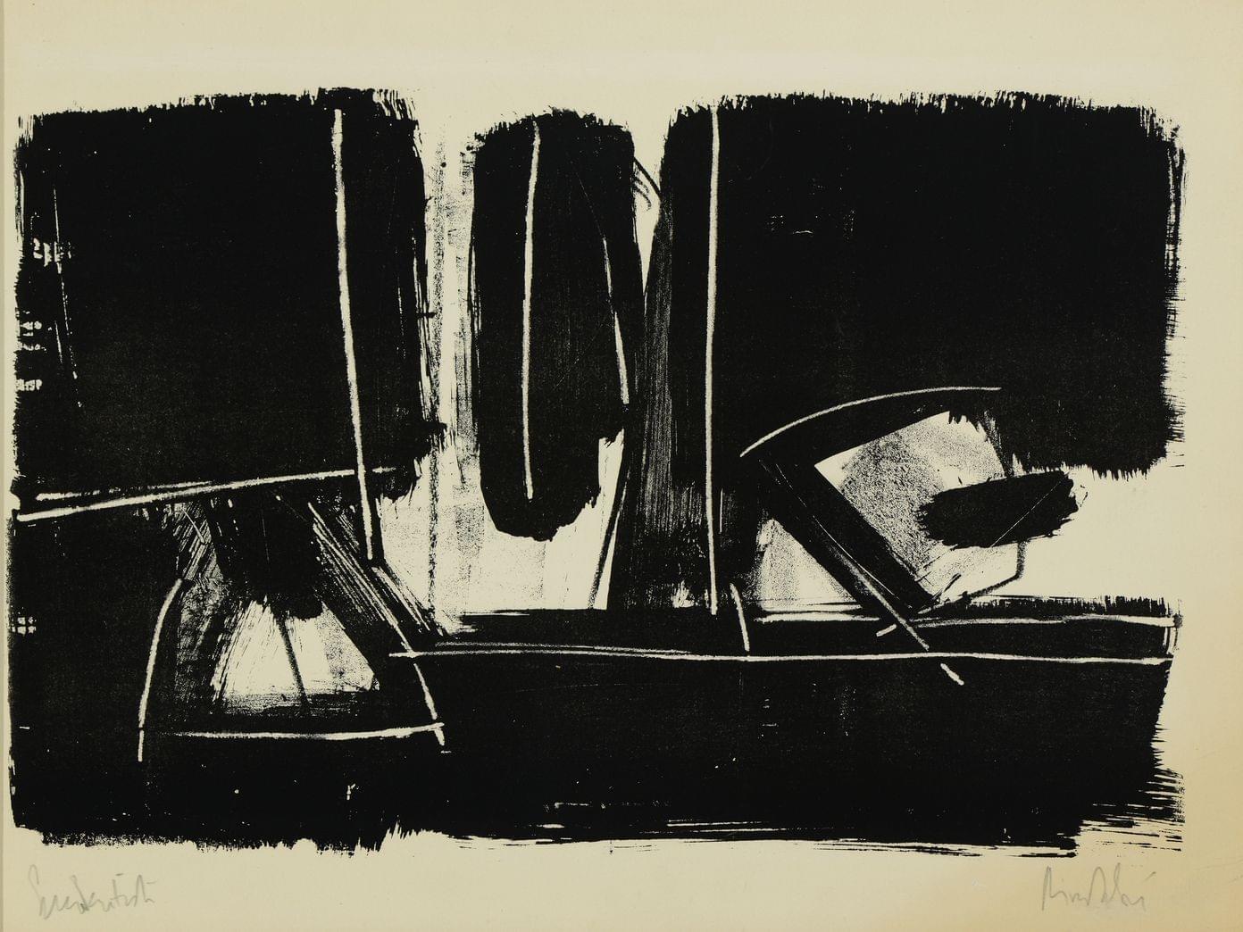 Abstraction noire, lithographie signée, épreuve d'artiste, 37x49 cm