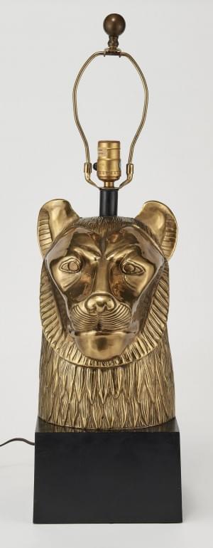 A décor de tête de chat, marbre et laiton, H 68 cm