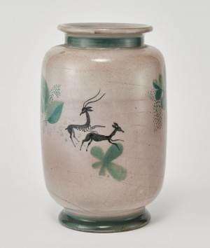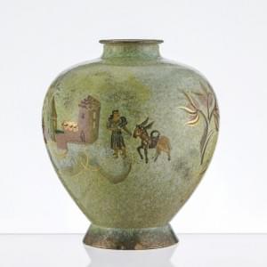 Vase à décor de scène de chasse, céramique émaillée verte sur fo...