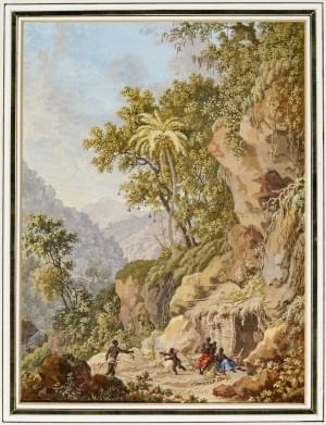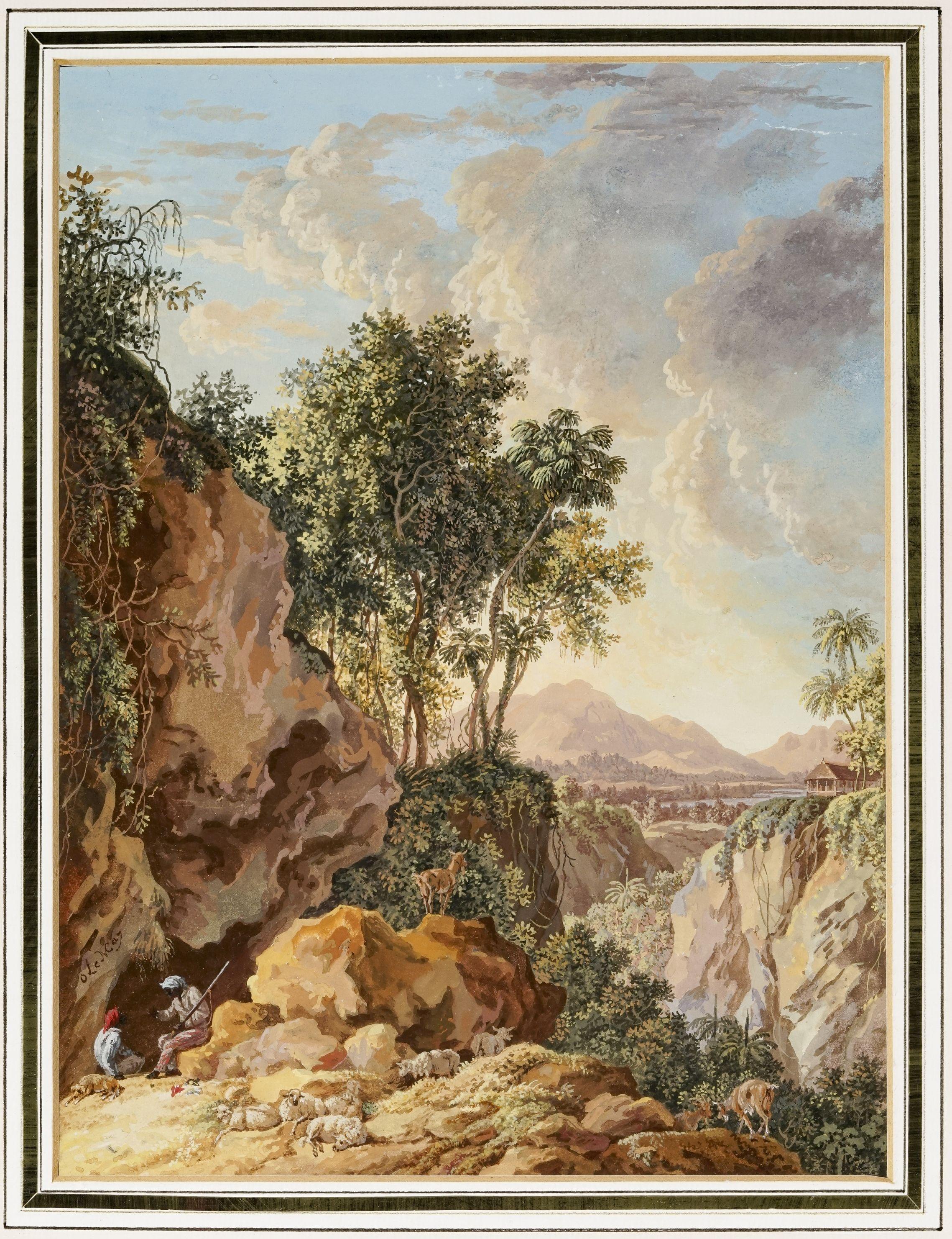 Vue de la Martinique et vue de Saint-Domingue, paire d'aquarelles sur papier, 27x20 cm