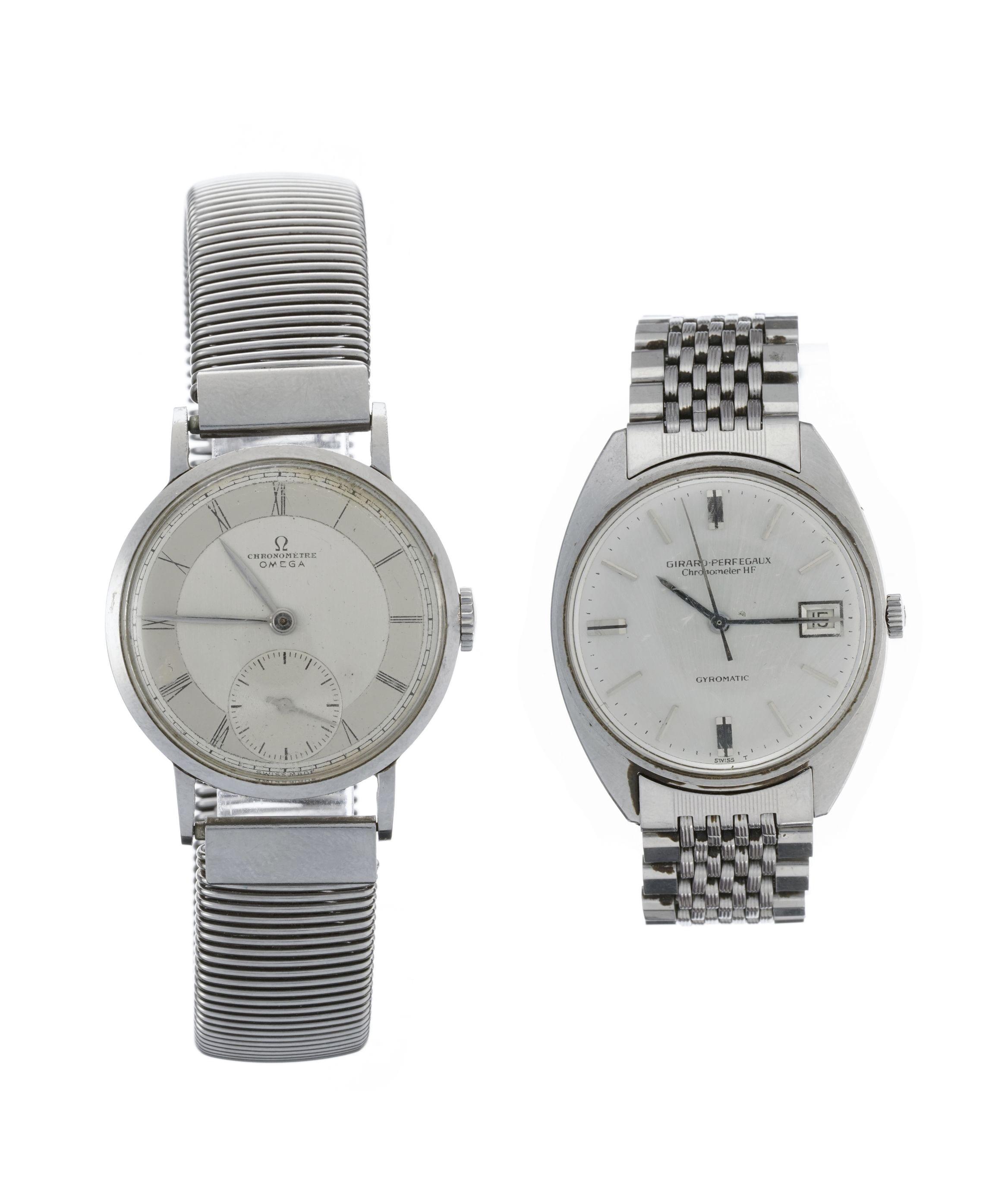 3053. Oméga et G.Perregaux, lot de deux montres bracelet rondes automatiques