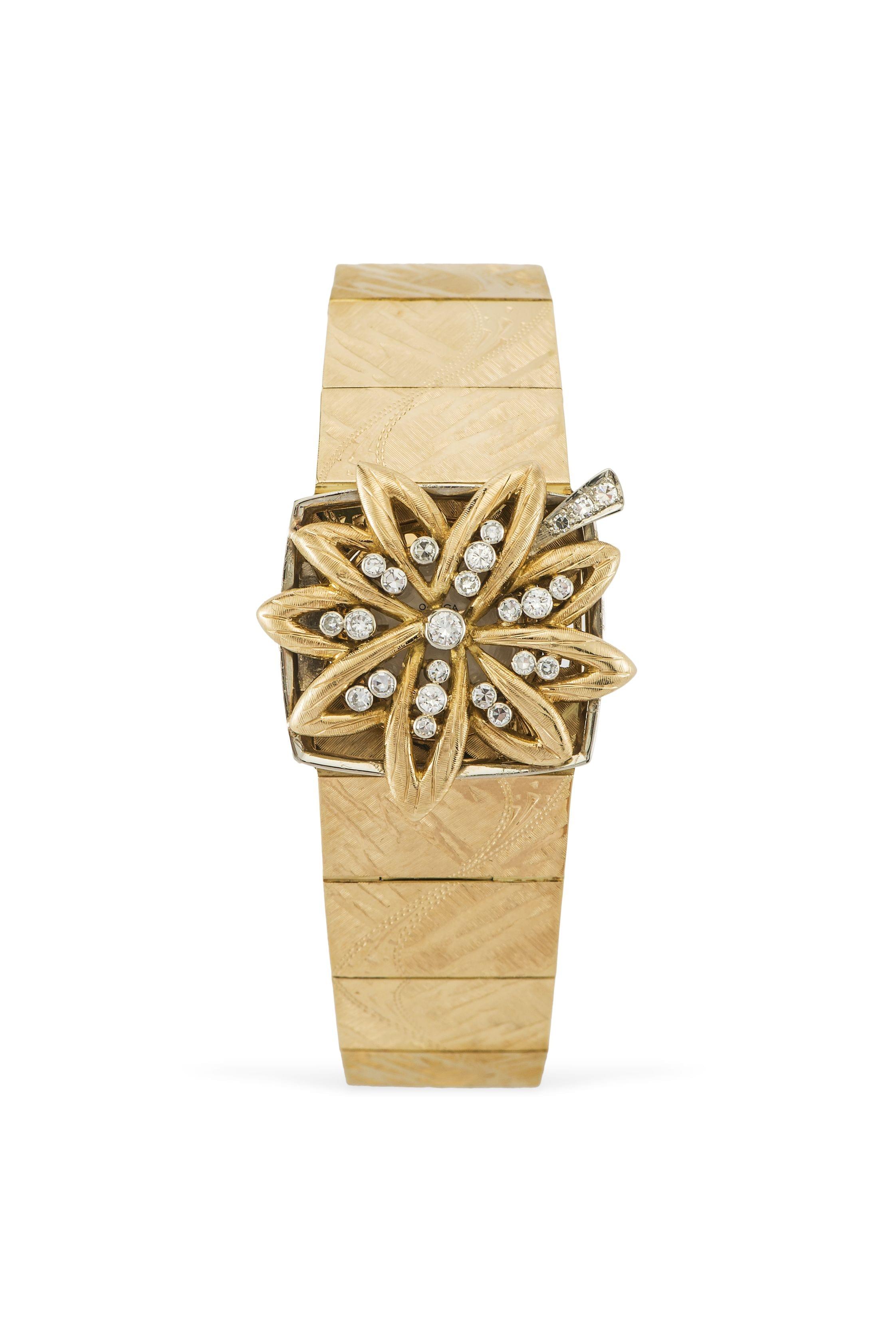Cadran doré, index bâton et aiguilles dorés, or 750, D 34 mm, po...