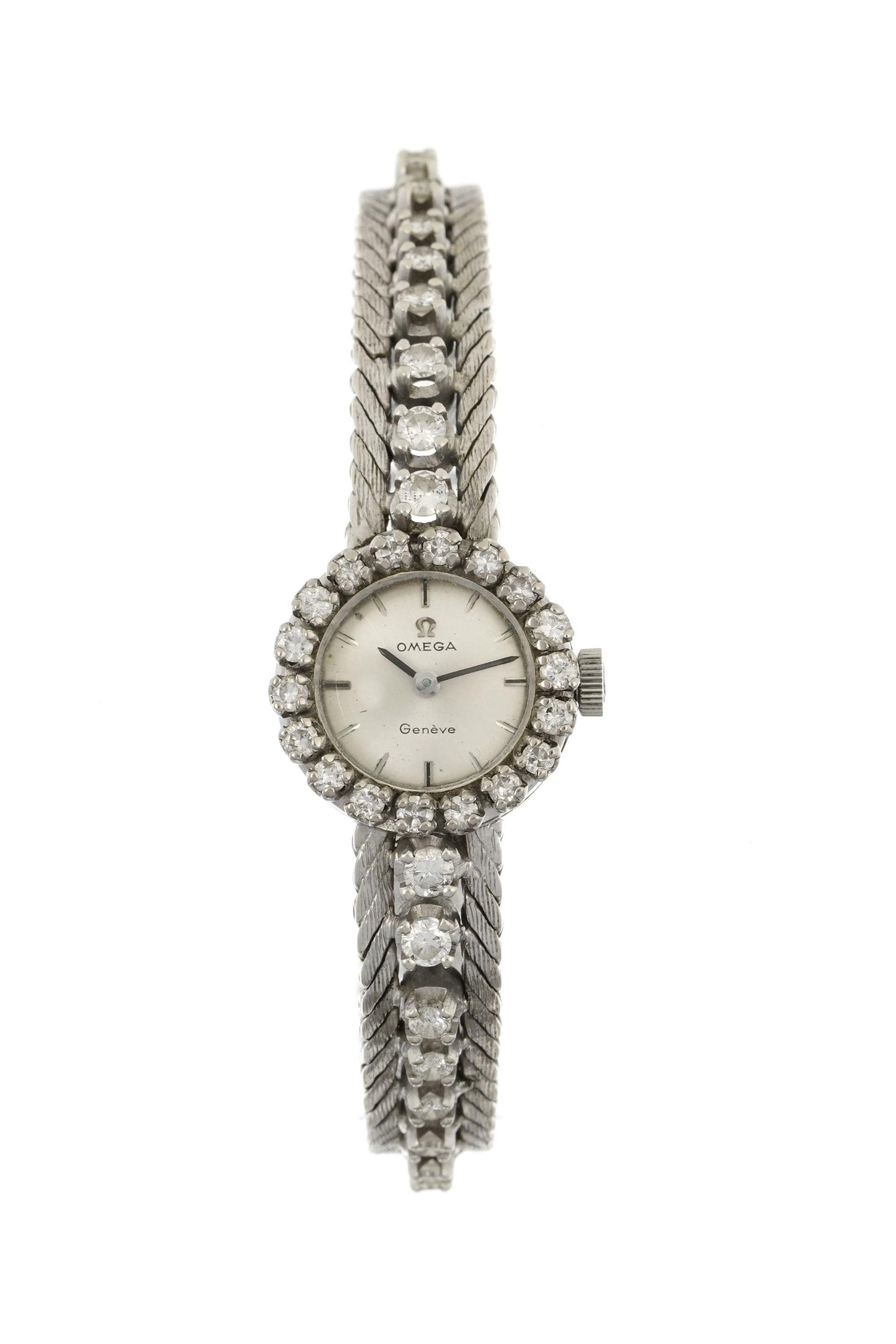 870. Omega, montre bracelet ronde mécanique sertie de diamants