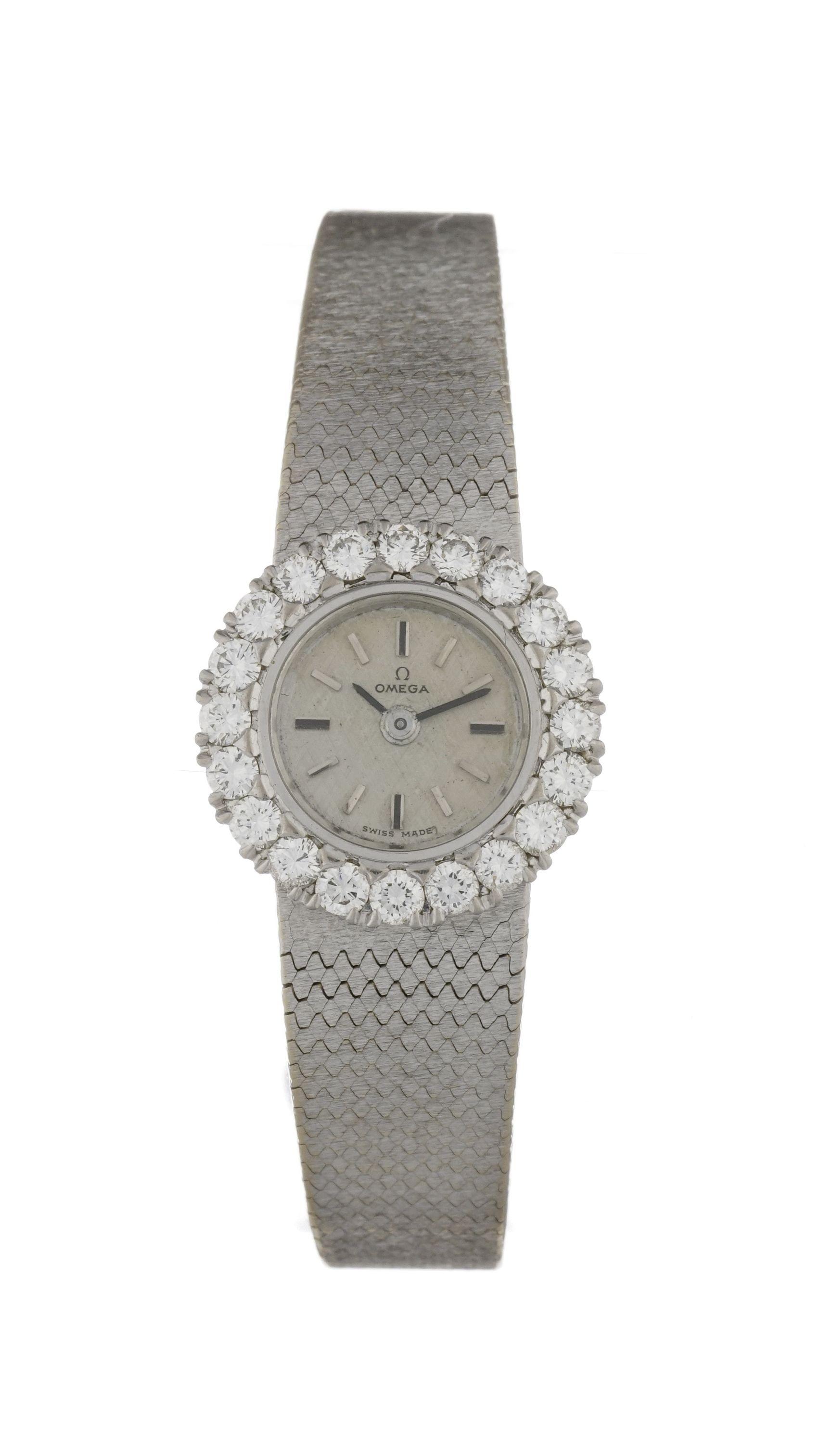 618. Omega, montre bracelet ronde mécanique sertie de diamants (env. 1 ct)