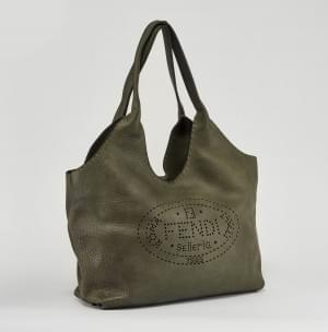 Cuir grainé kaki, fermeture aimantée, intérieur en cuir argenté,...