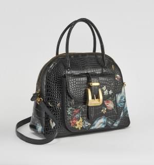Cuir de crocodile bleu marine peint de motifs floraux, intérieur...