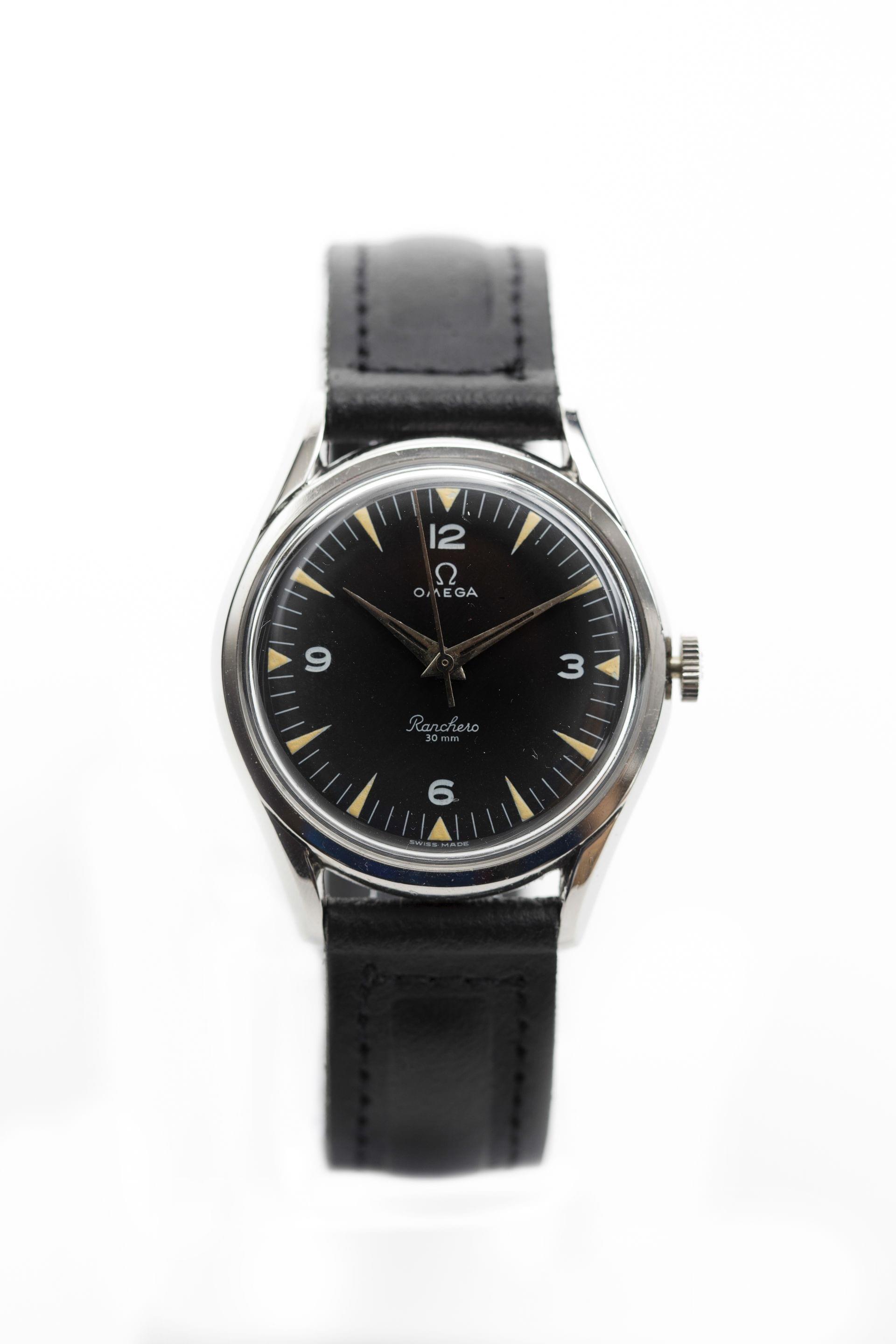 Cadran noir, chiffres romains blancs, aiguilles argentées, réf. 2892-2SC, 1956, acier, D 35 mm, dans un écrin