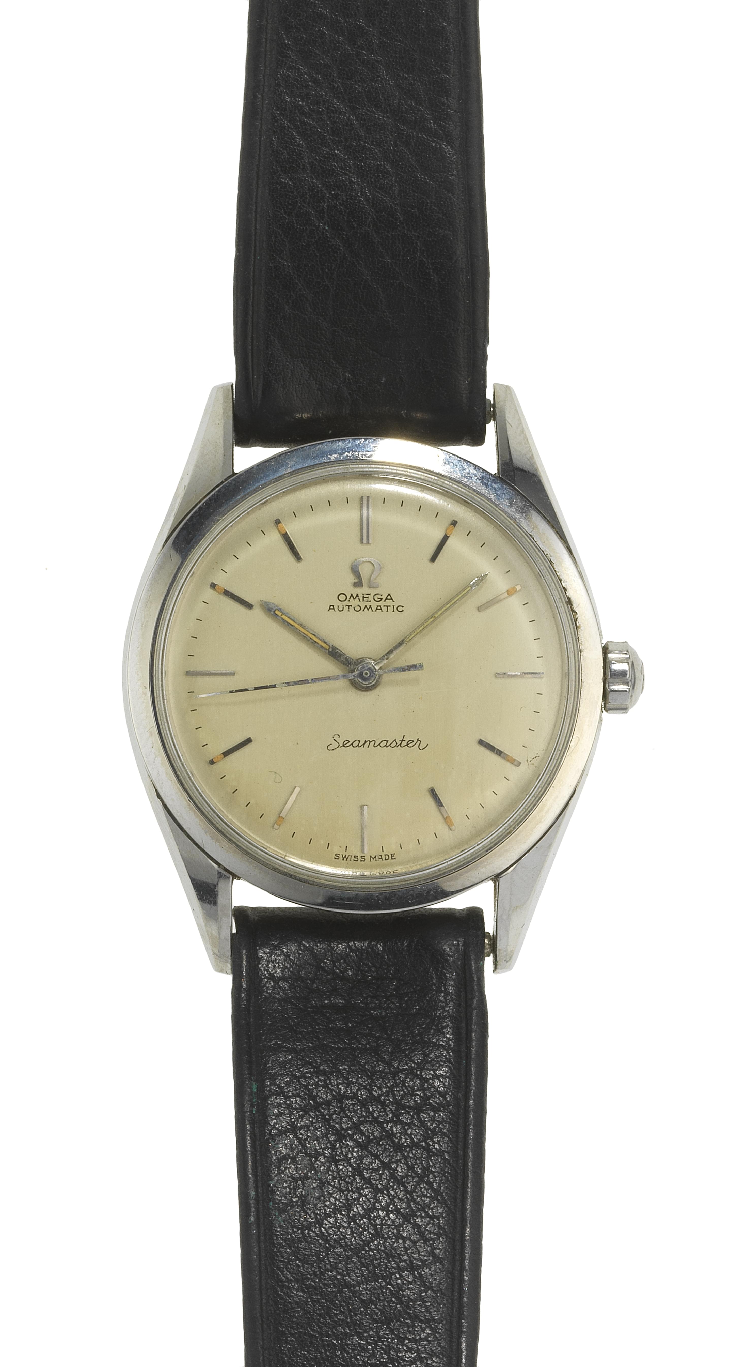 Cadran gris, aiguilles et index bâtons argentés, acier, D 33 mm. Provenance : collection Marisa Perret-Rezzonico