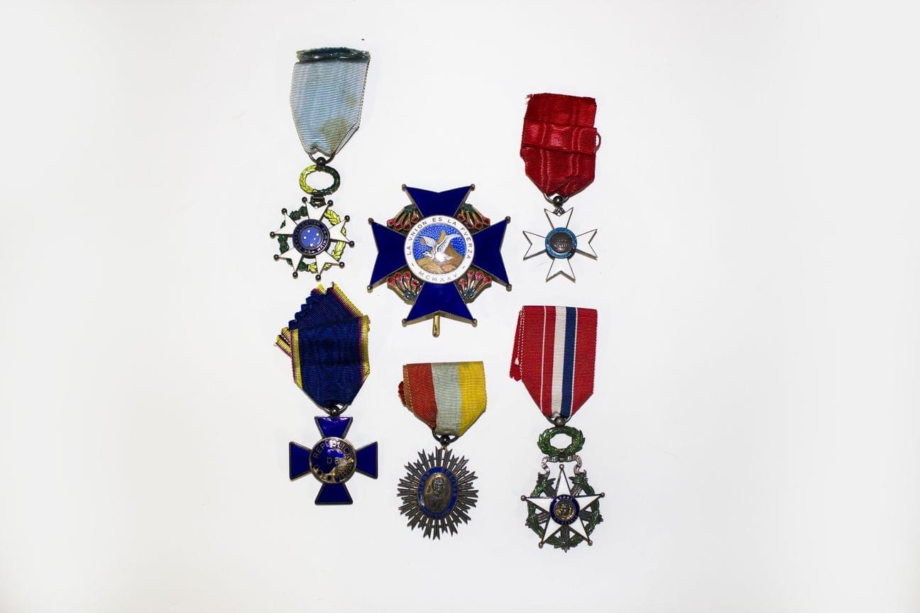4030. Ordre du Cóndor de Los Andes, plaque de Grand-Croix, Ordre de Boyacá, croix de chevalier, Ordre de l'Honneur et du Merite d'Haïti, croix de chevalier, Ordre du Libérateur, médaille de chevalier cinquième classe, Ordre national de la Croix du Sud, médaille d'officier, Ordre national du Mérite, médaille de chevalier