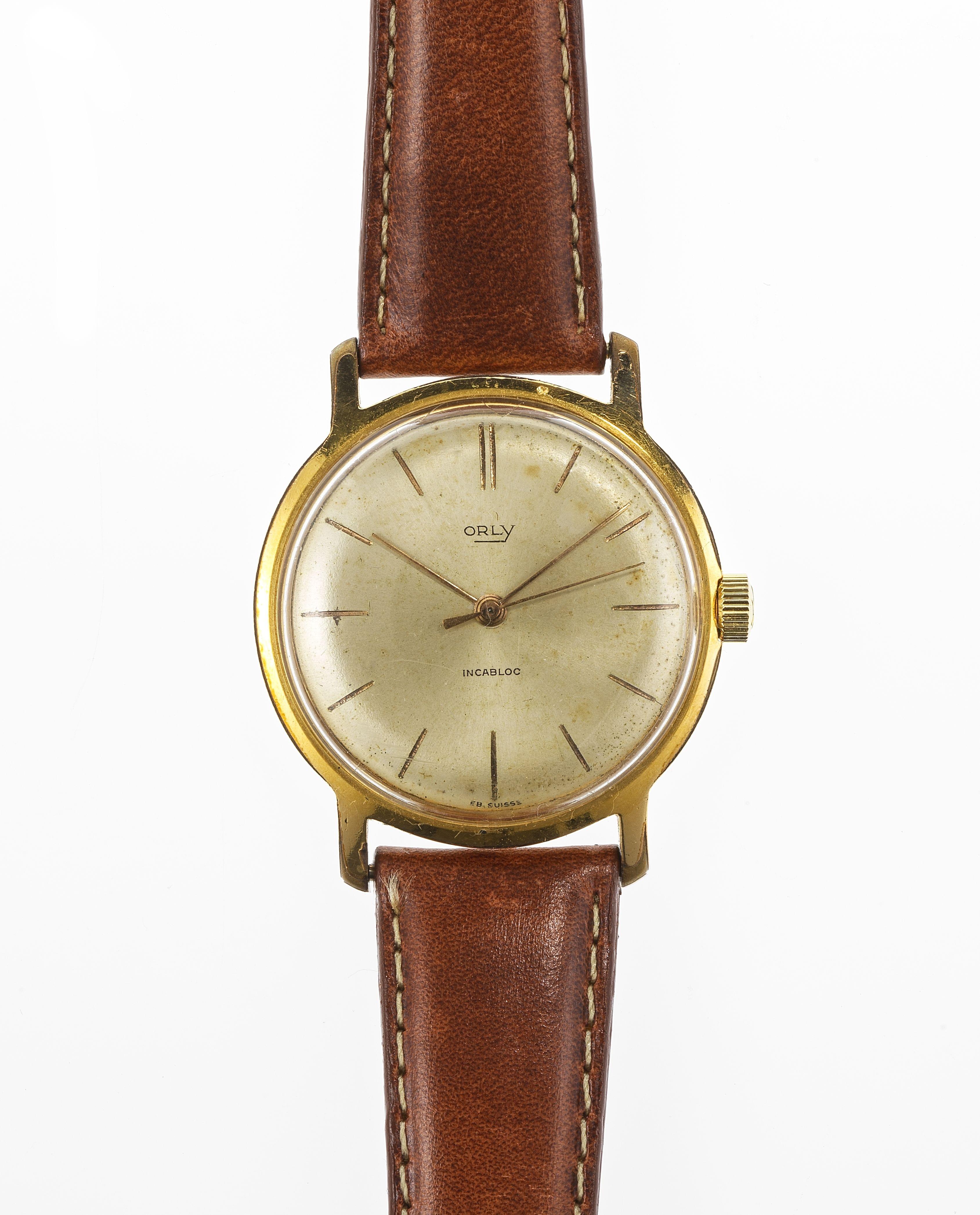 Cadran doré, aiguilles et index bâton dorés, métal doré, 34 mm