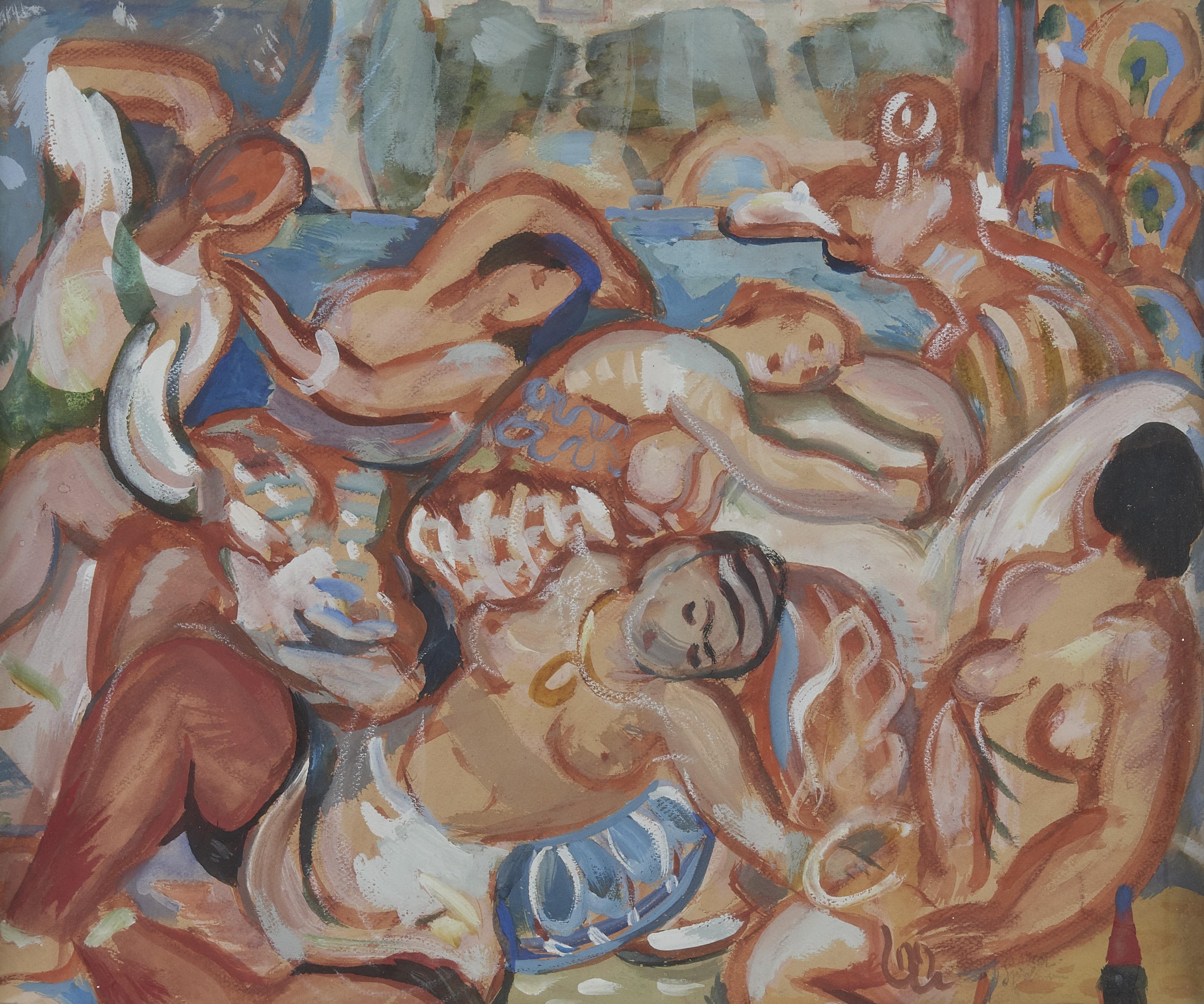 Jeune homme et anges, gouache sur papier, 42x47 cm