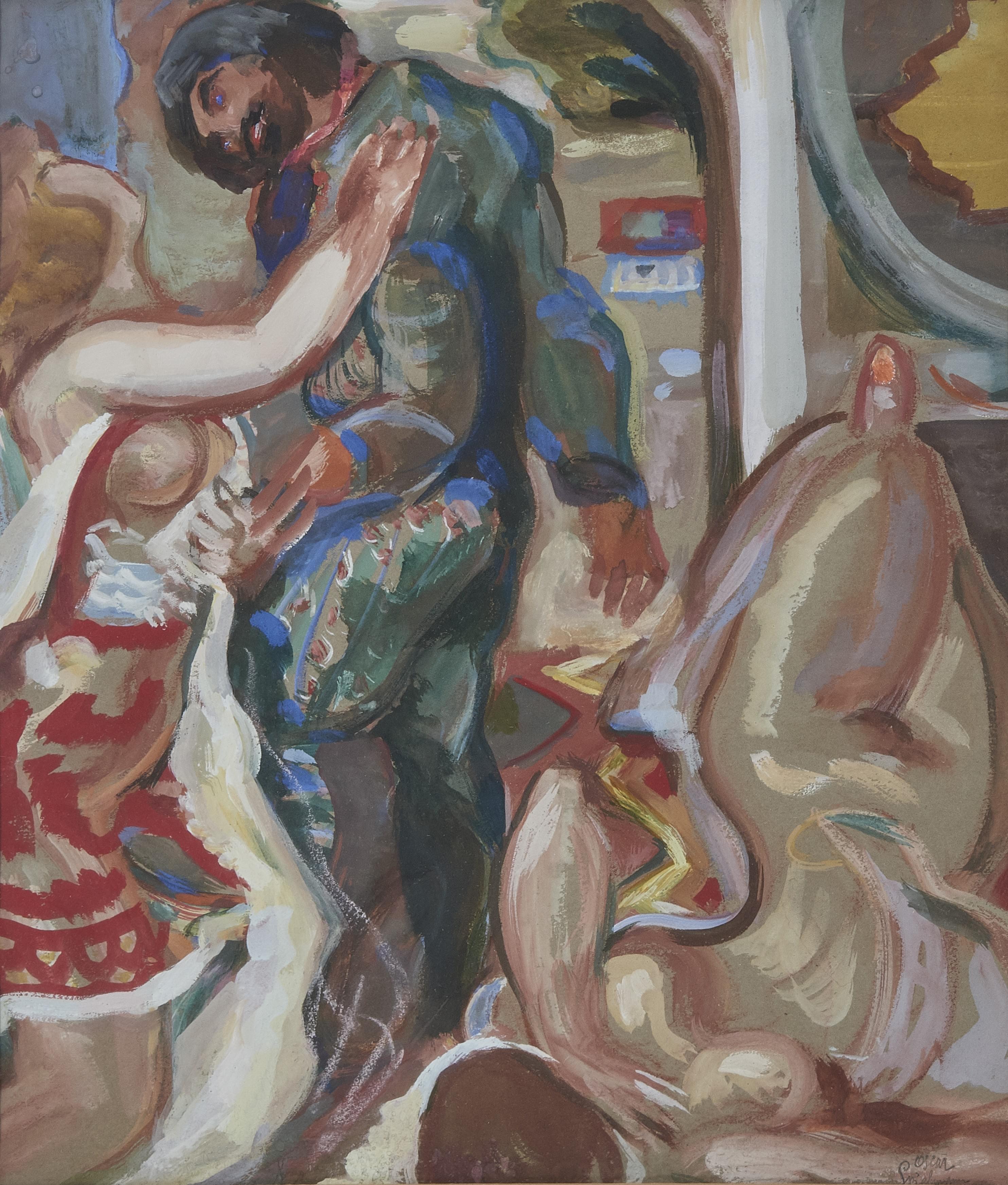 Jeune homme et anges, gouache sur papier, 42x47 cm