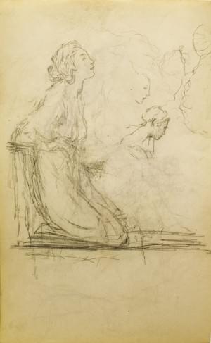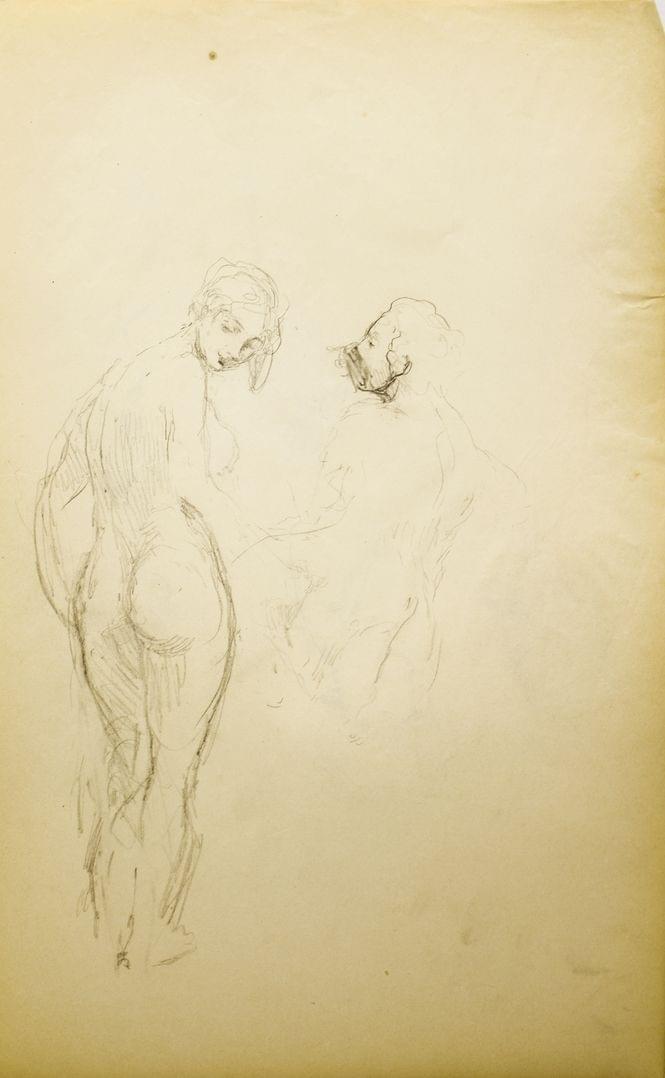 Réception, mine de plomb sur papier, signée et dédicacée à son p...