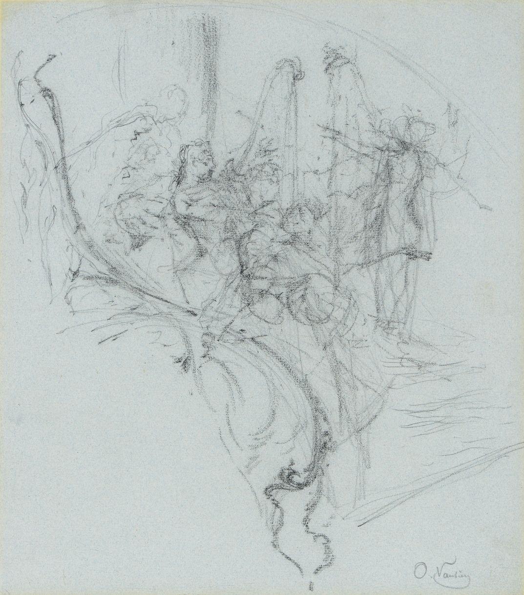 Homme assis sur un banc, hommage à Otto Vautier, fusain sur papi...