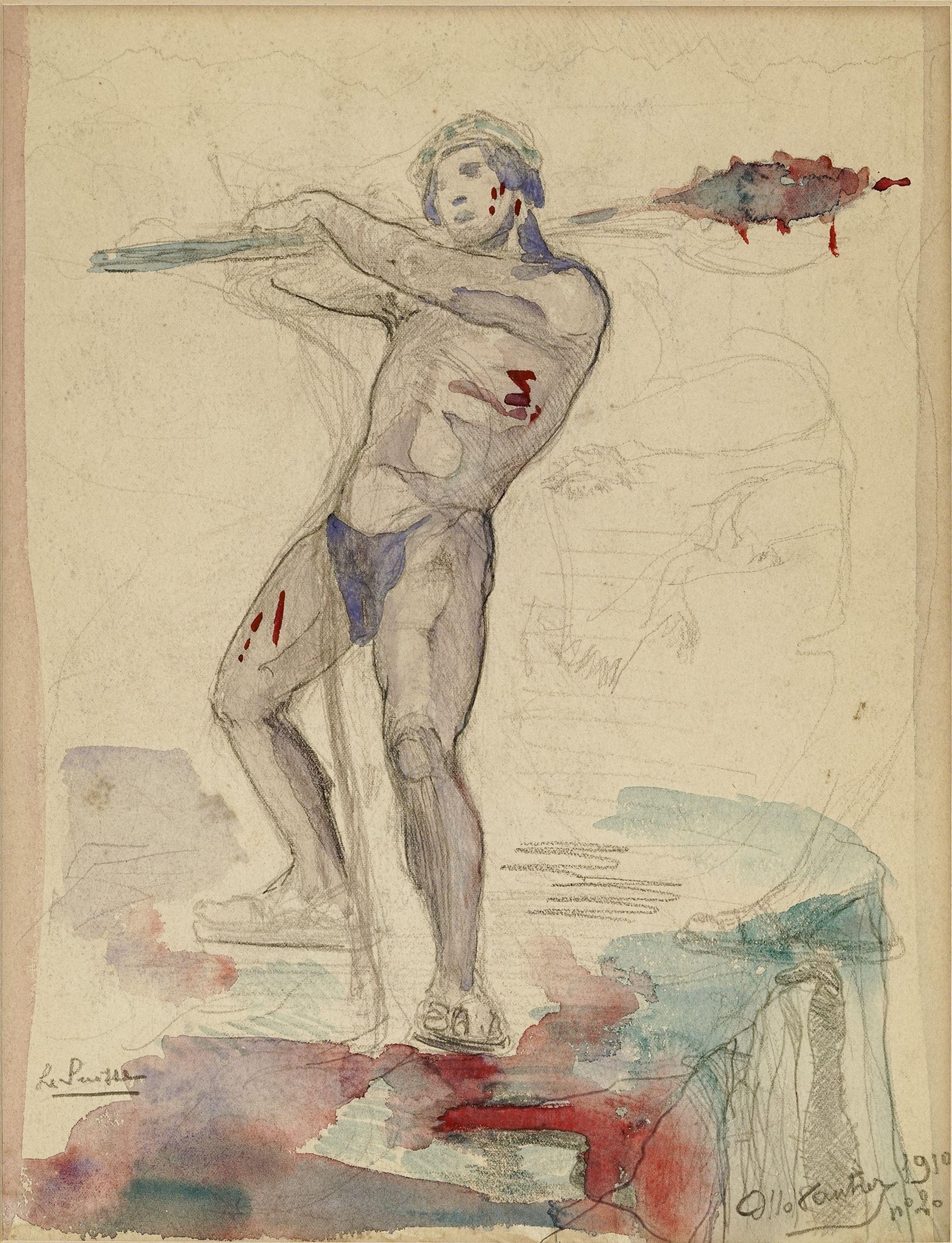 Le boulanger, crayon et aquarelle sur papier, signée et datée 19...