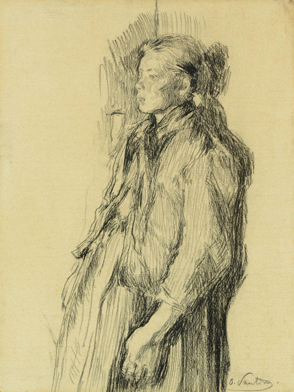 Portrait de l'artiste, sanguine sur papier, signée, 53x44 cm. Pr...