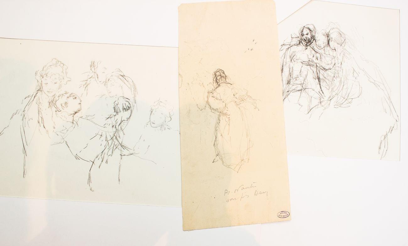 Procession religieuse, aquarelle sur papier, signée, 54x38 cm