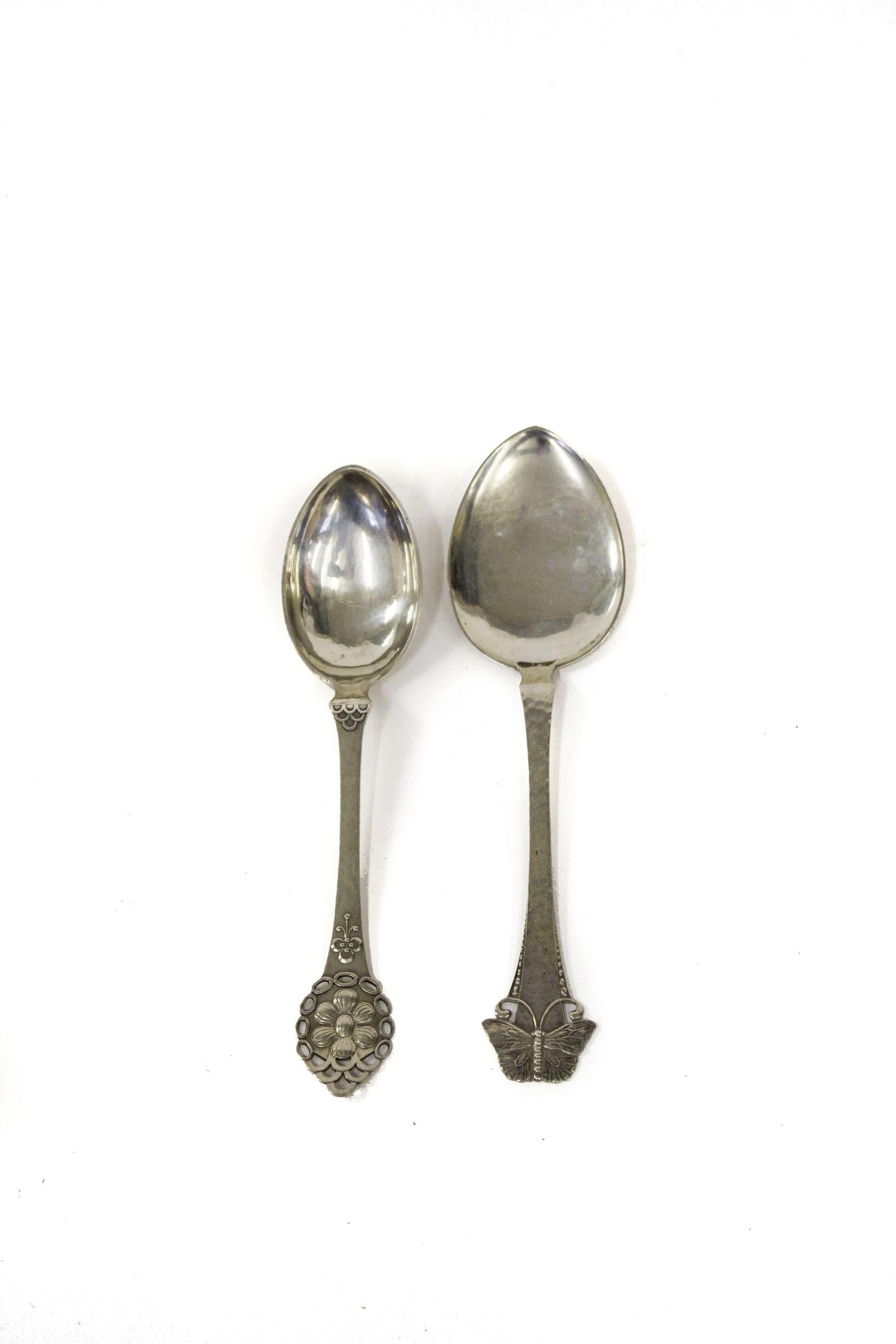3312. PA 2 cuillères à décor Art Nouveau de fleurs et papillons