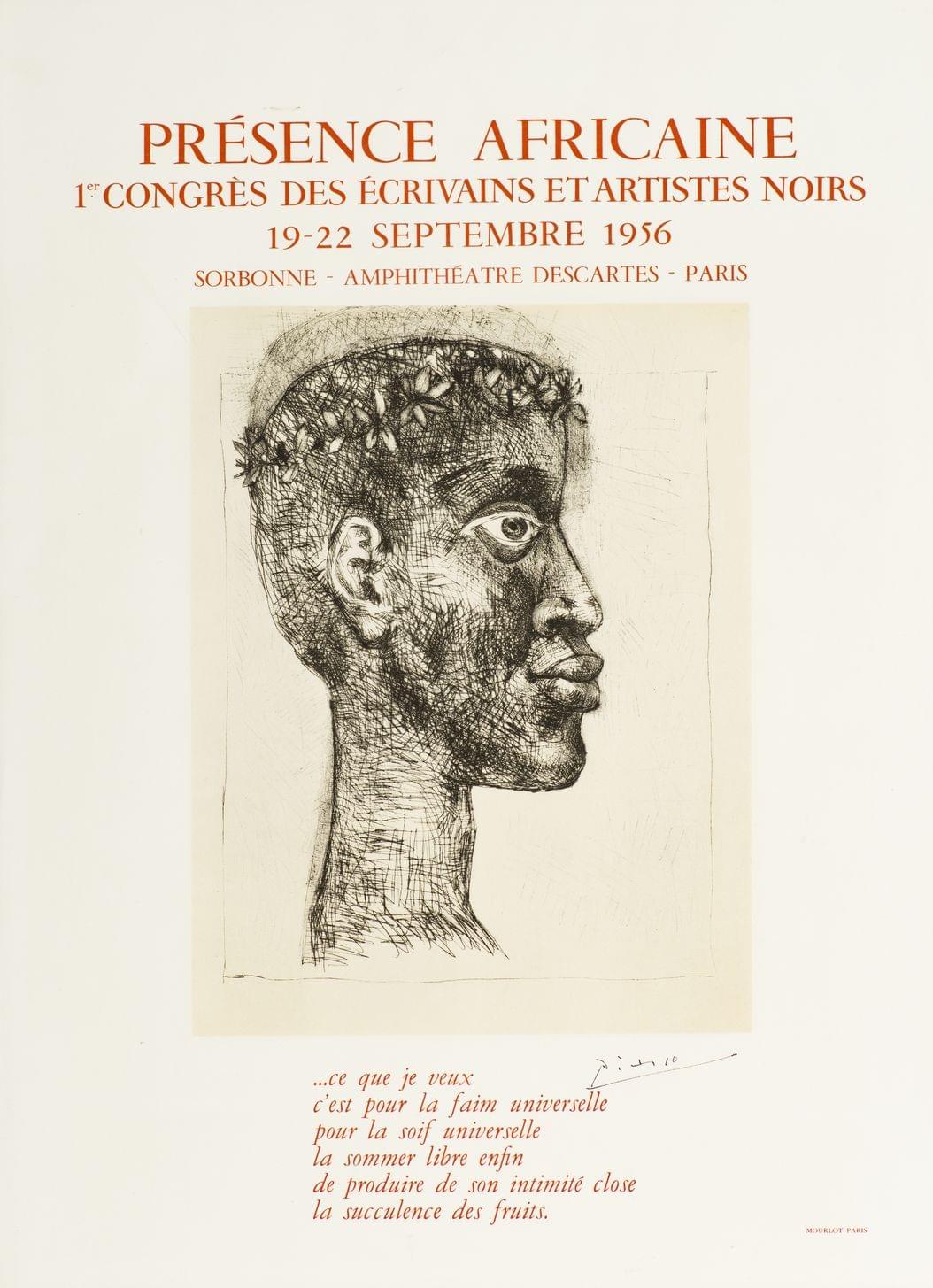 Affiche originale "Présence africaine, congrès des écrivains et artistes noirs", lithographie imprimée par Mourlot, 1956, 66x42 cm