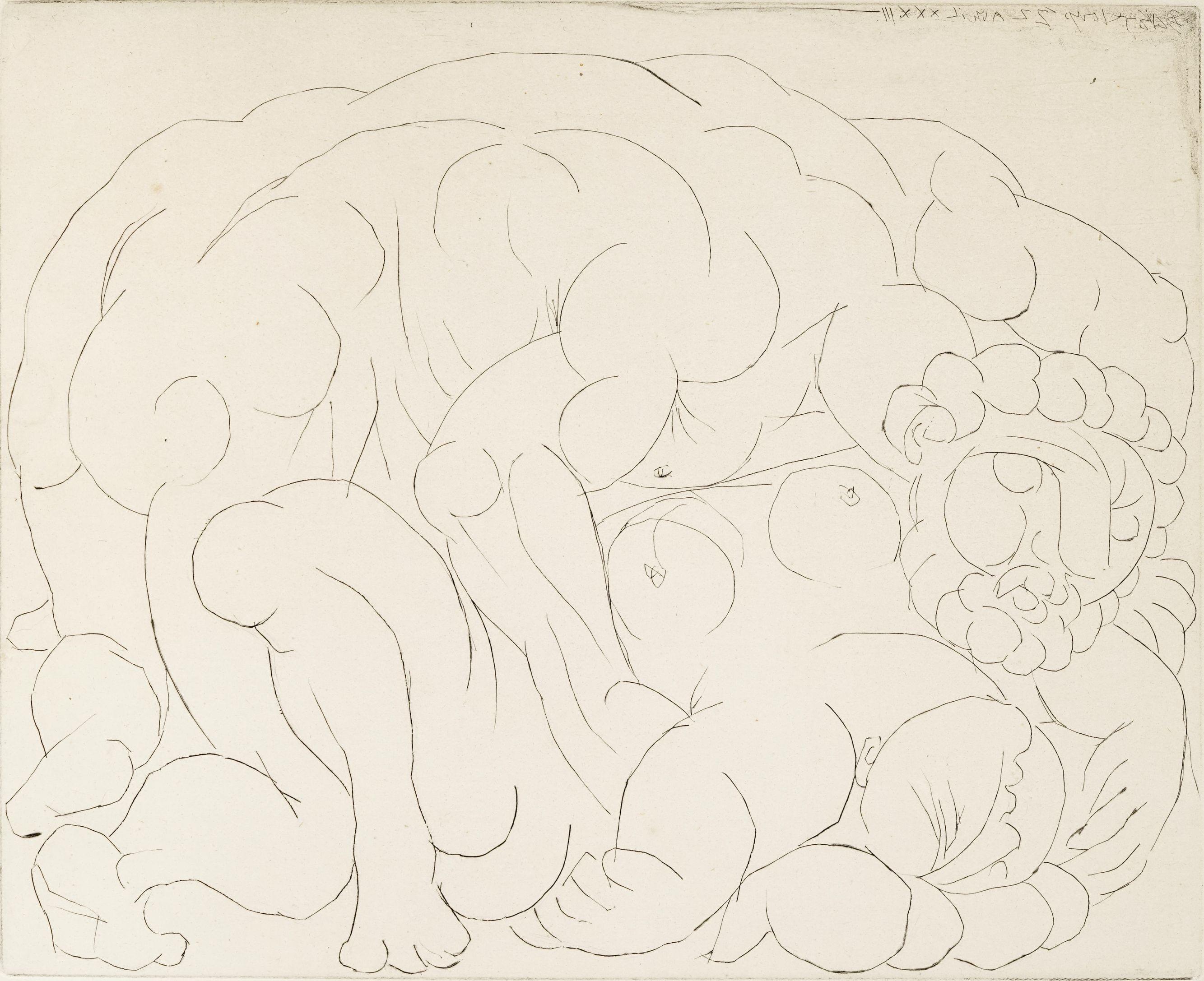 Minotaure et femme derrière un rideau, (Suite Vollard, pl. 91) 1...