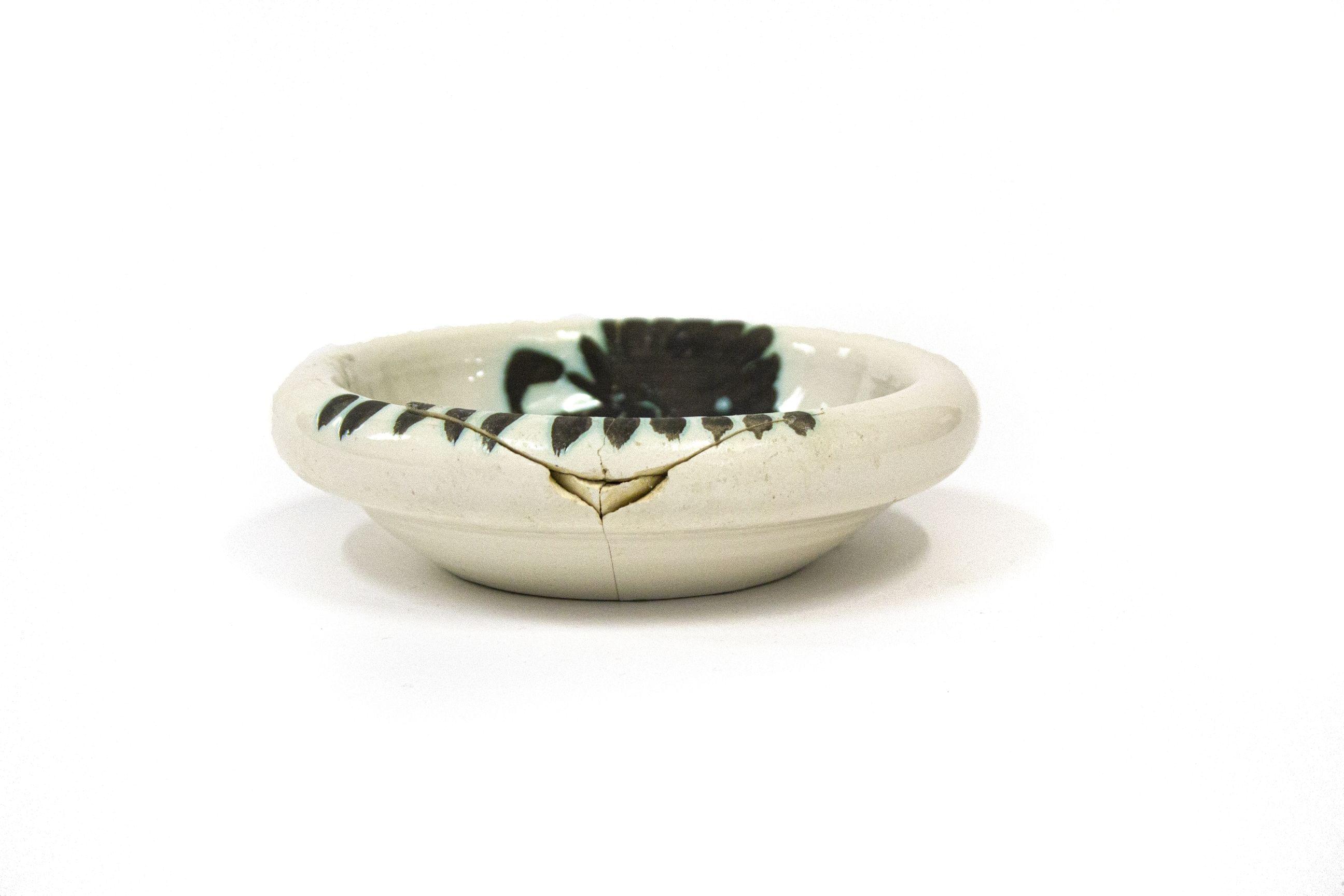 Bol tête de taureau, terre de faïence blanche, décor à l'engobe...