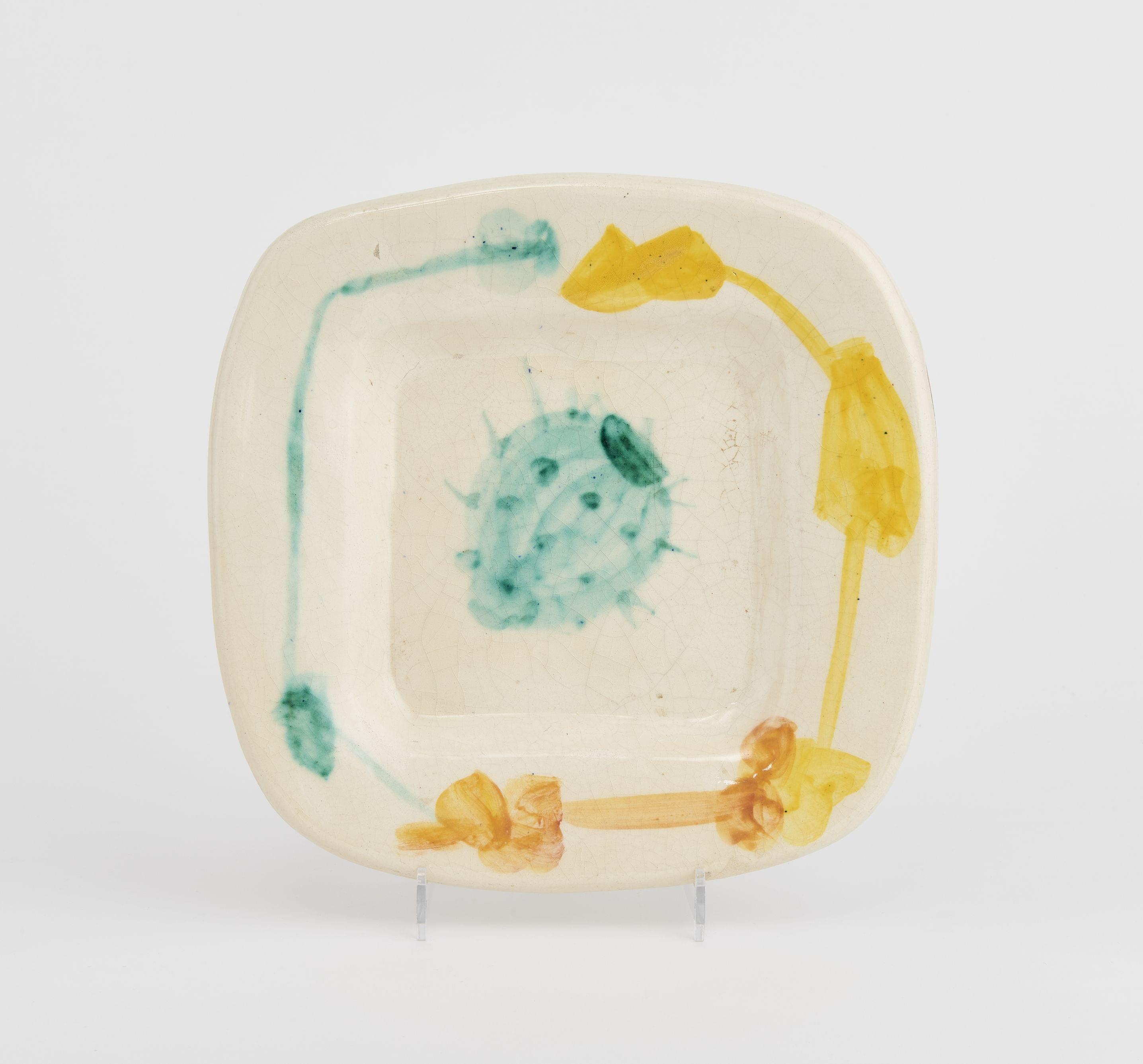 Vase tourné chouette (1968), terre de faïence blanche, décor aux...