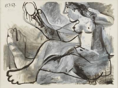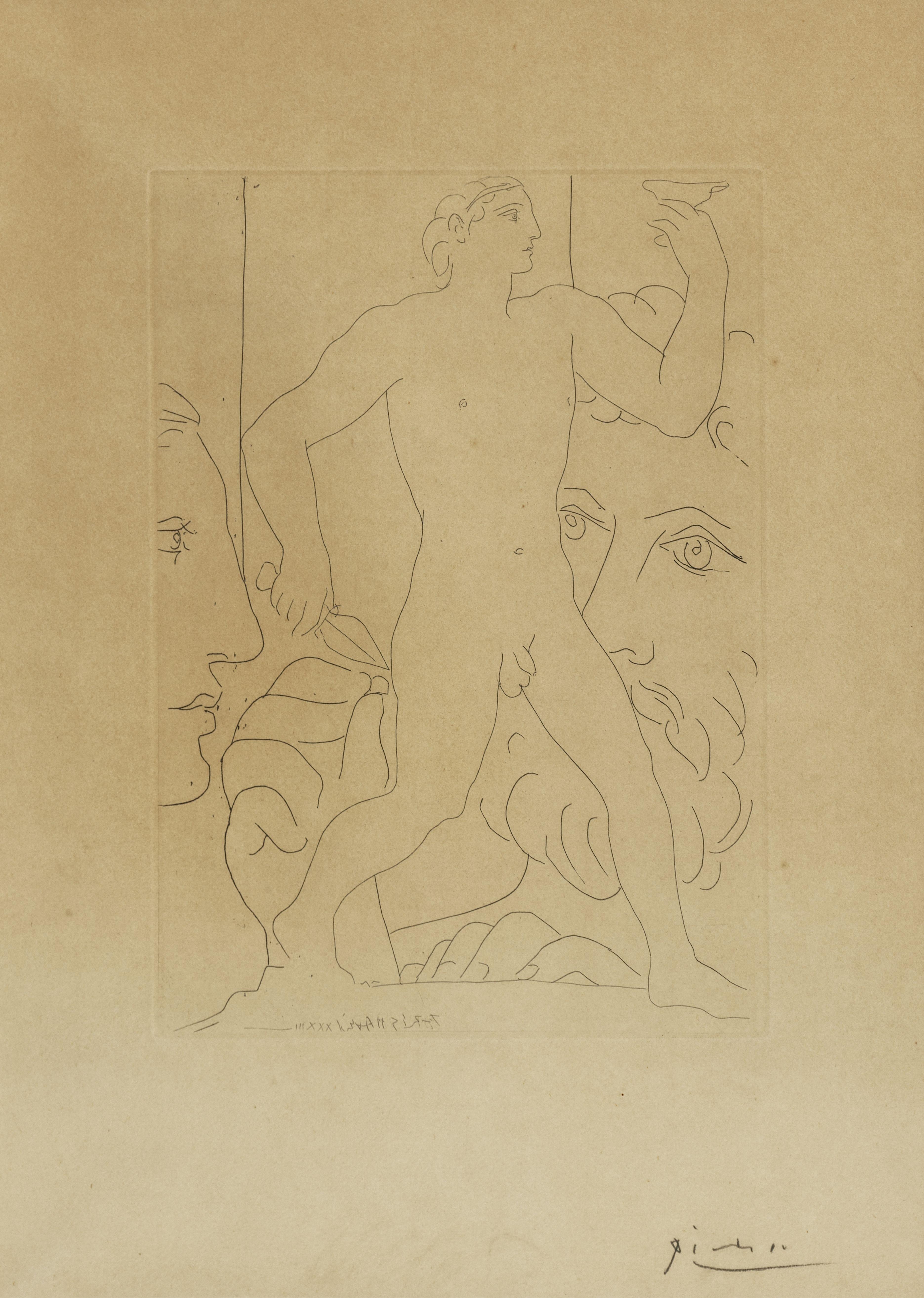 Marie Thérèse, sculpteur au travail et sculpture représentant un athlète grec, 1933, signée à la mine de plomb et datée dans la planche à l'envers Paris, 11 avril XXXIII, 26,5x19,5 cm (feuille 43x32 cm)