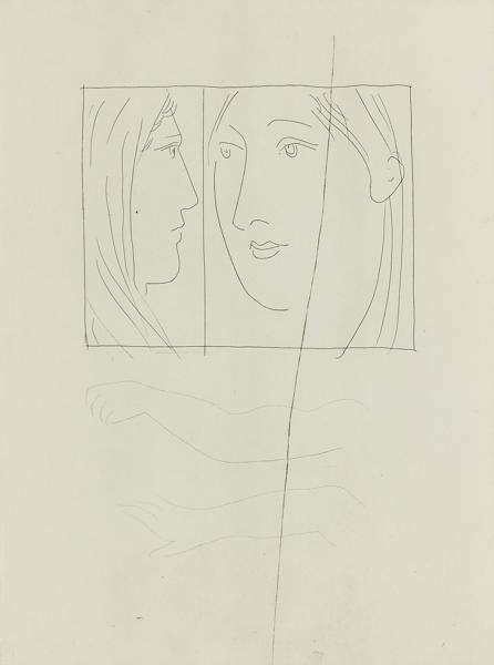 Visages, gravure sur cuivre rayé, 34x26 cm