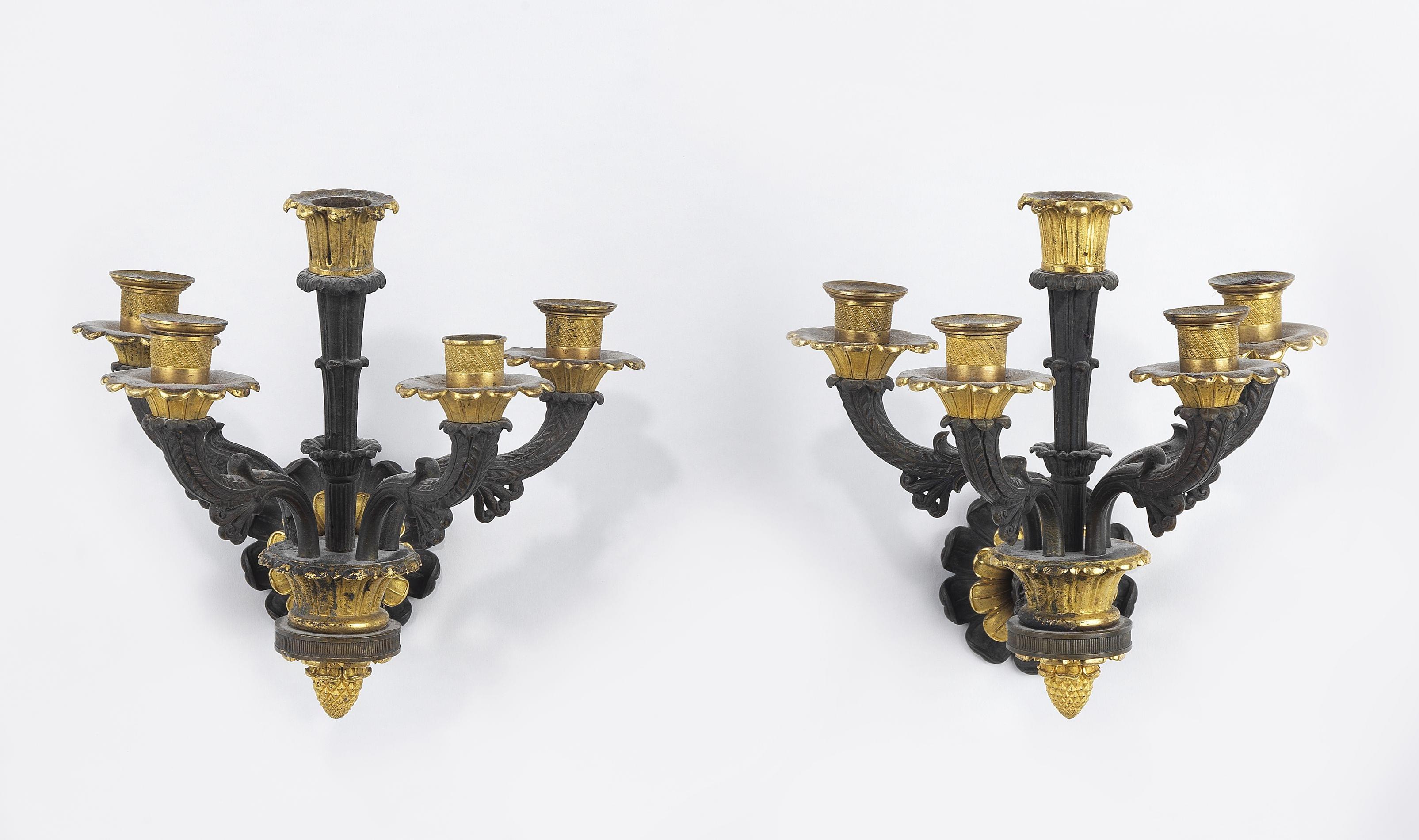 4879. Paire d'appliques à cinq feux de lumière d'époque Restauration