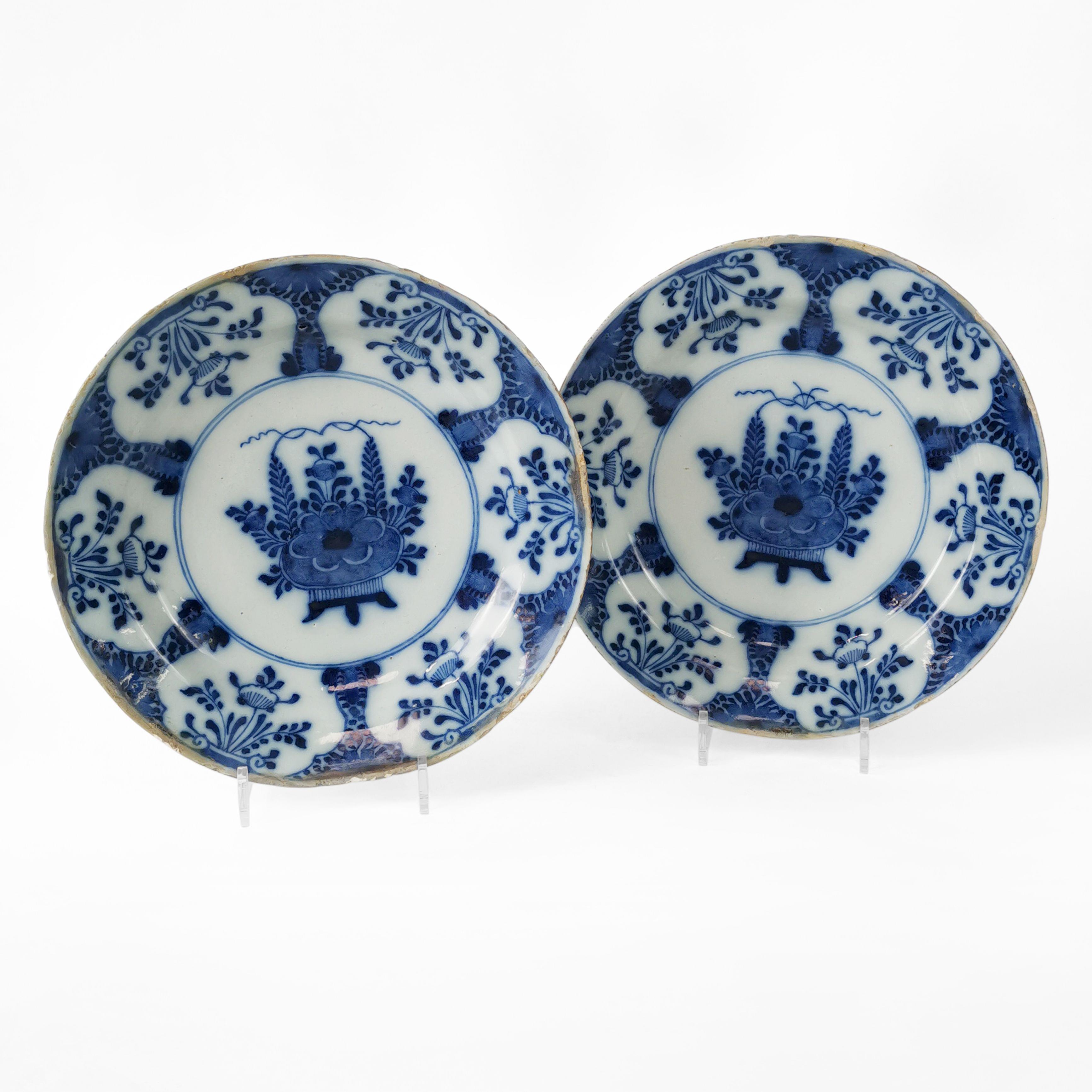 Faïence émaillée bleu et blanc à décor floral, D 32 cm