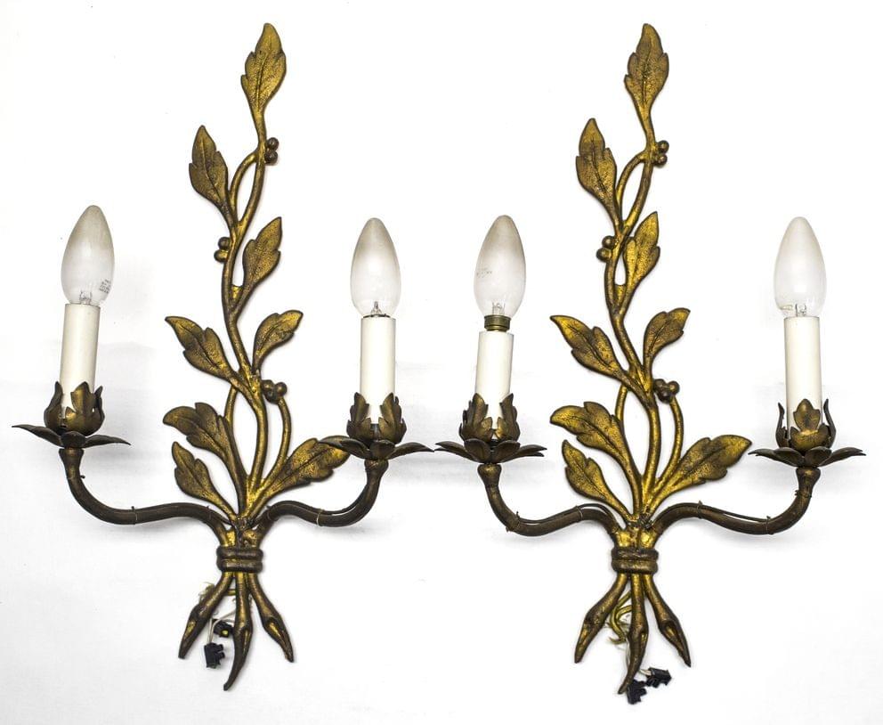 Deux lumières, métal doré à décor de rinceaux, H 50 cm