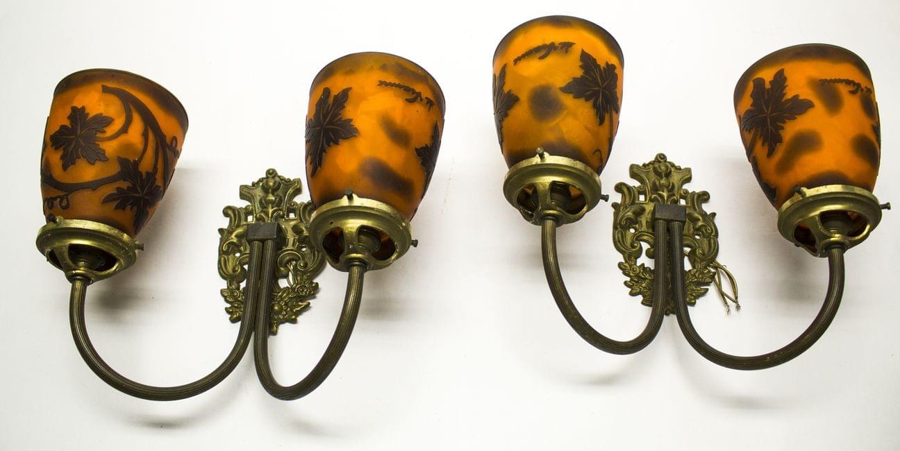 90. Paire de saupoudroirs, deux bouteilles et un flacon en verre gra...