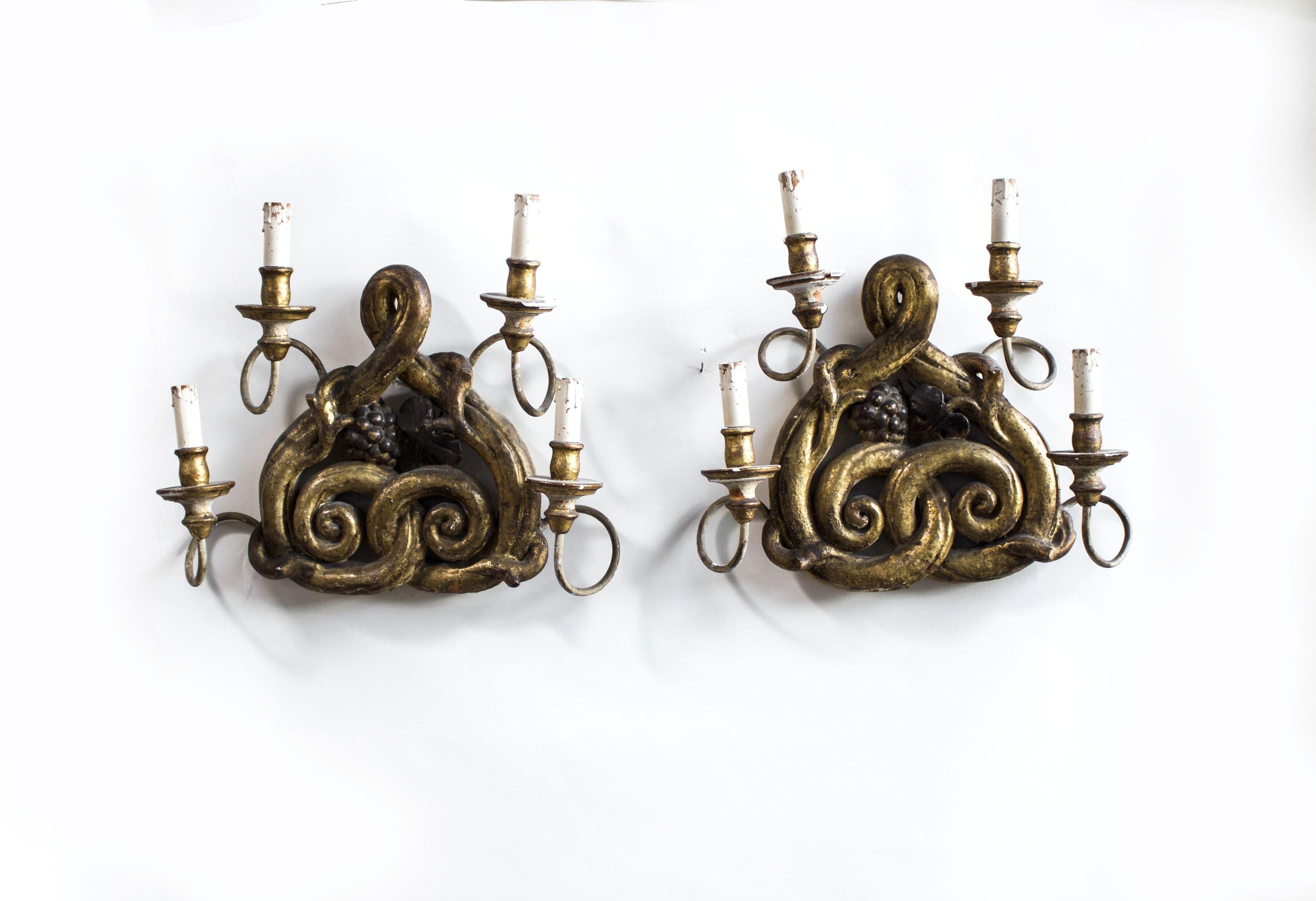 3716. Paire d'appliques à quatre lumières, Italie, début XXe s