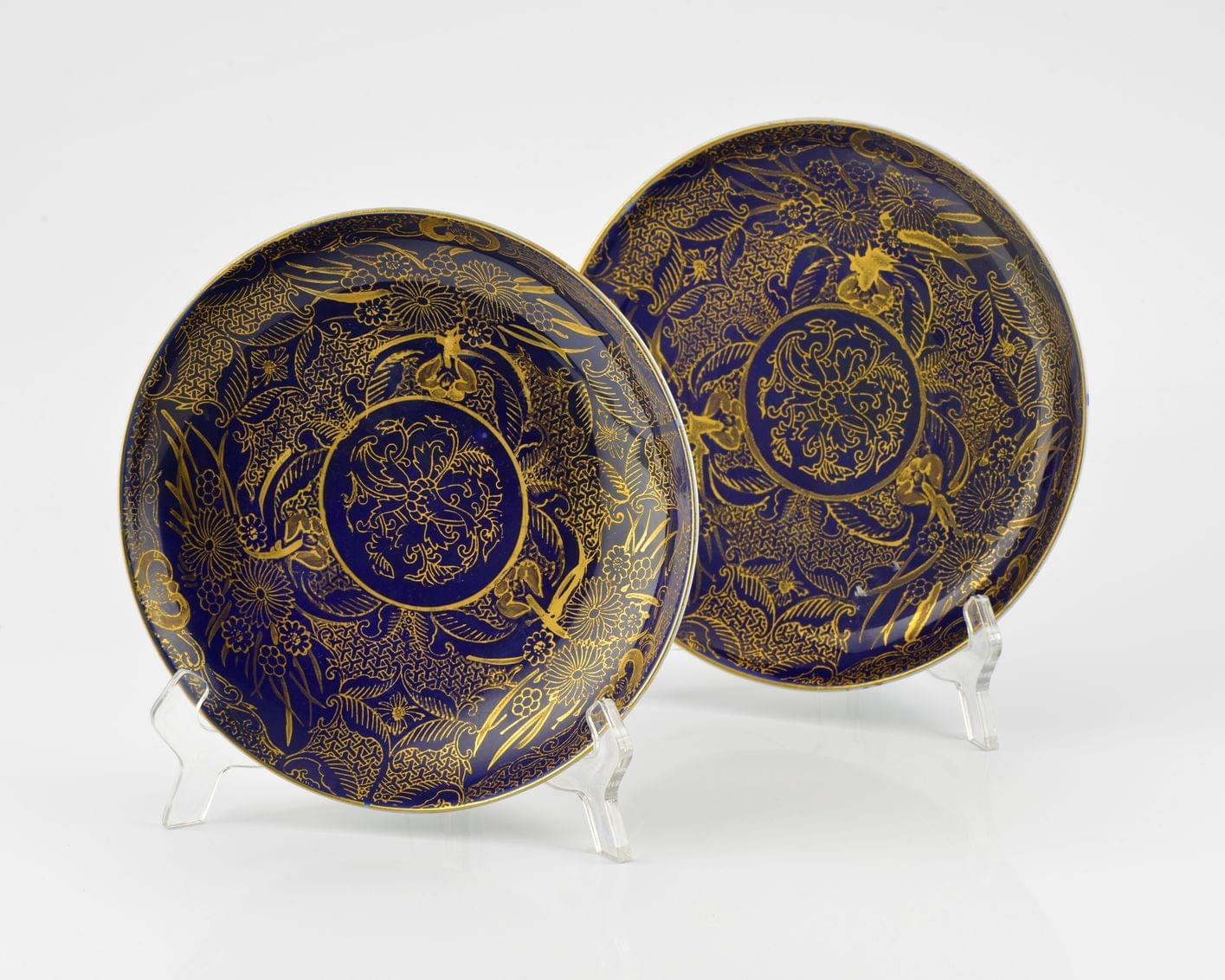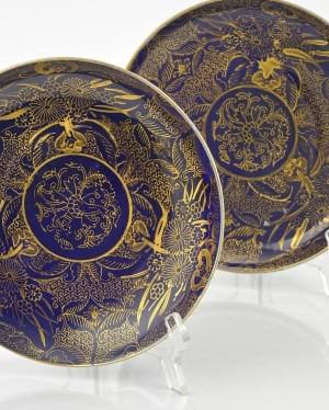 Porcelaine à décor floral or sur fond bleu nuit, Japon, XIXe s, D 21 cm