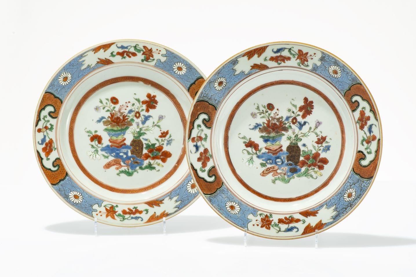 Porcelaine émaillée bleue, rouge, vert et or, surdécoré, Chine, XVIII, Compagnie des Indes, D 23 cm