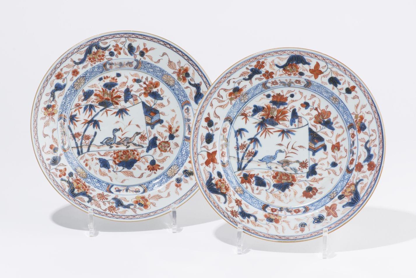 Porcelaine émaillée bleue rouge et or à décor floral de canards, Chine, époque Qianlong (1735-1796), D 23 cm