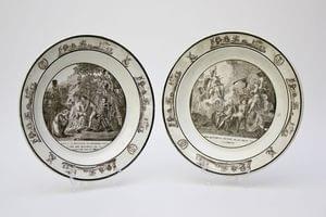3181. Paire d'assiettes à décor imprimé d'épisodes de Don Quichotte